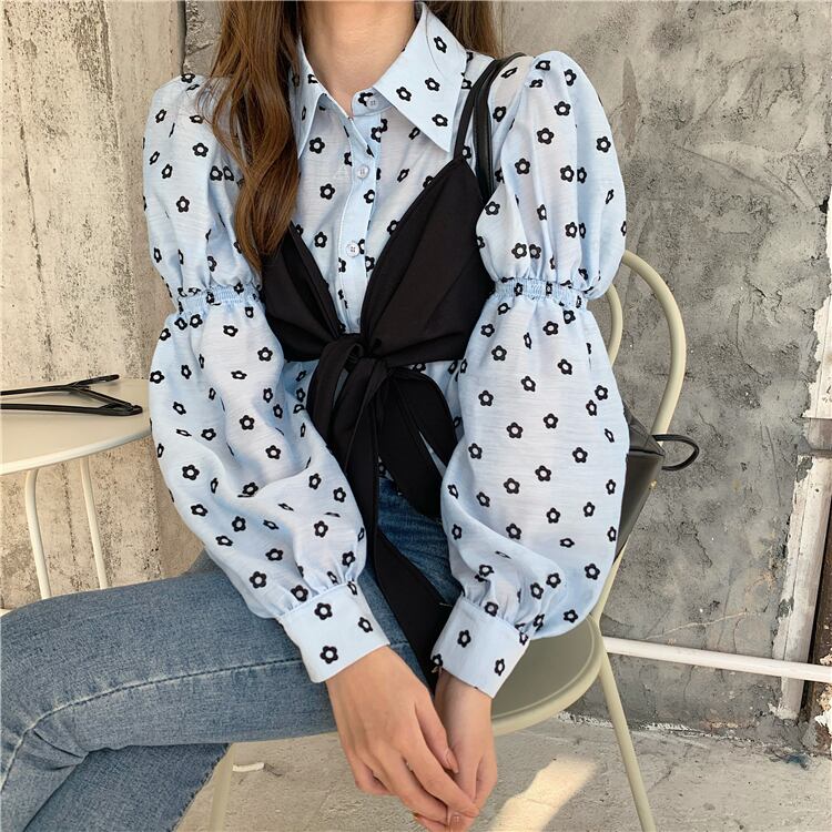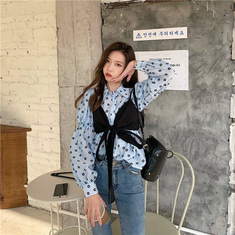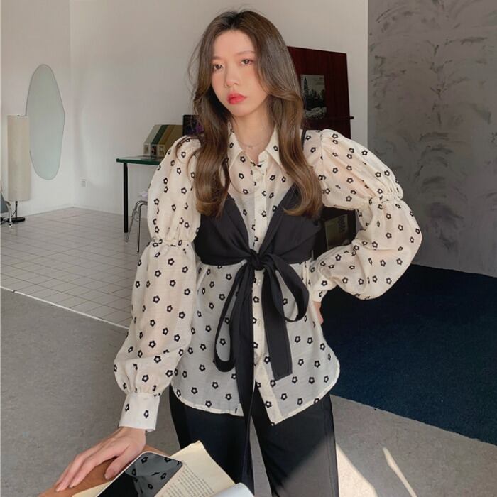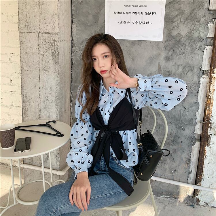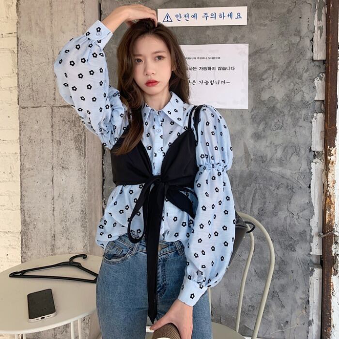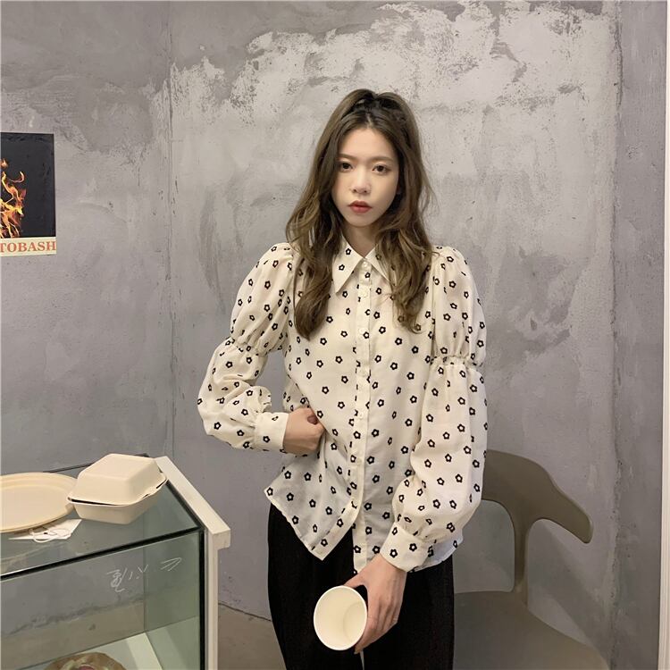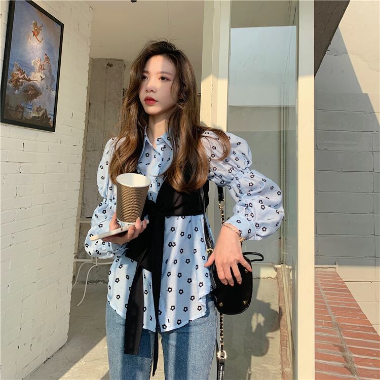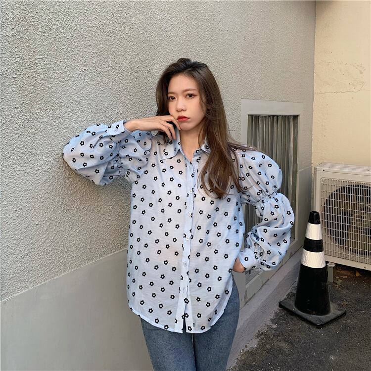 スプリング秋物韓国ファッションルーズ薄手フローラルシャツ トップス レディース ロング 春物 オータム 花柄 スタイル 長袖 ワンナンバー87996360293