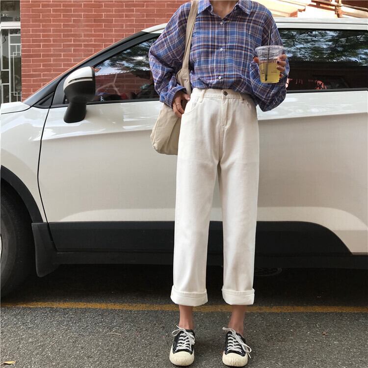 スプリング夏服韓国ファッションルーズハイウェストジーンズ 薄手ホワイトパンツ 春物 夏物 スタイル ウエスト YY5134526