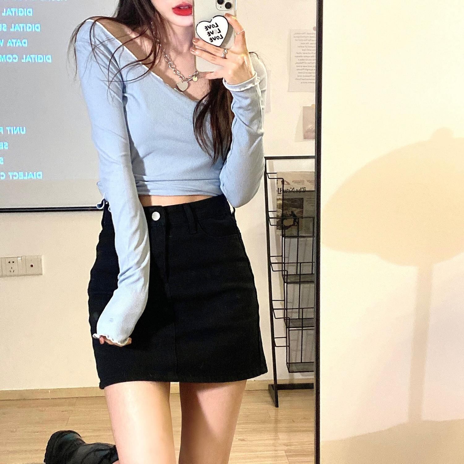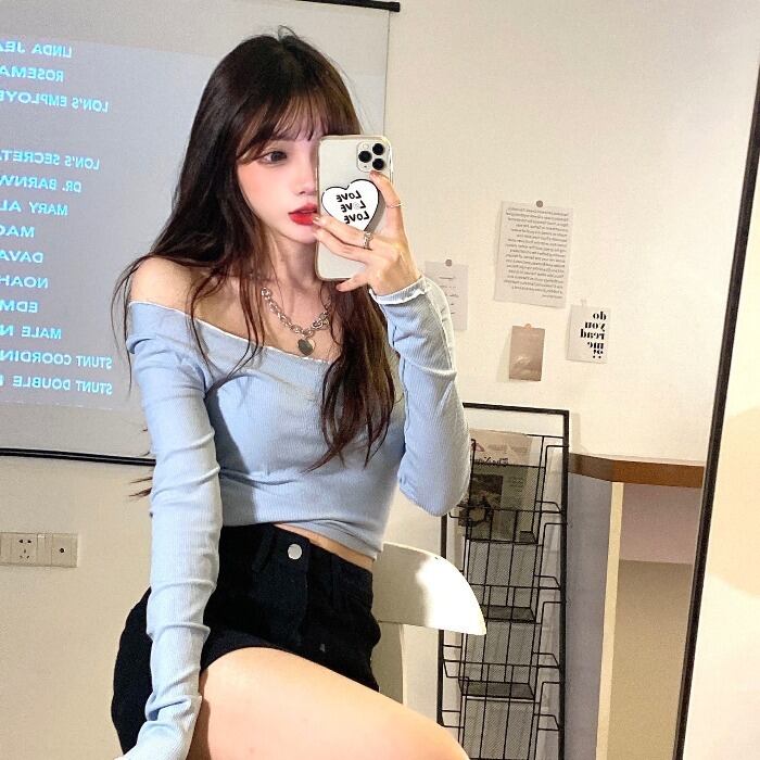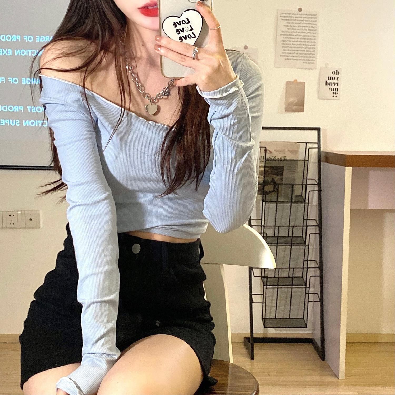 シャツ スプリングレディーストレンドショートトップス スリムTシャツ ロング 春物 長袖 MONROE63920278410