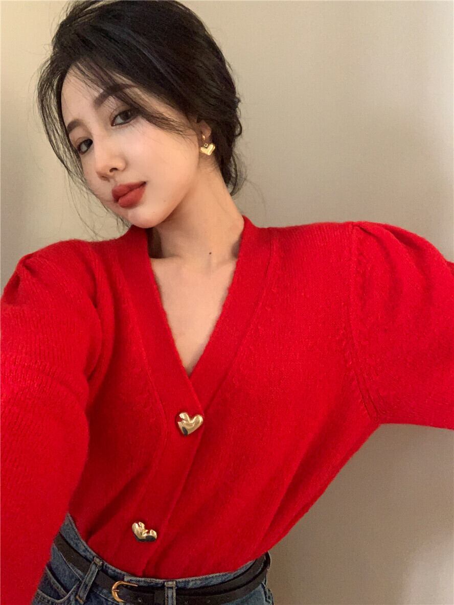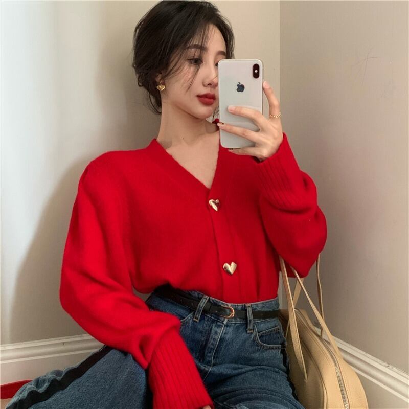 レッドセーター レディース秋物ウィンタールーズVネックコート カーディガントップス トレンド ロング オータム 冬物 長袖 YY16151708577