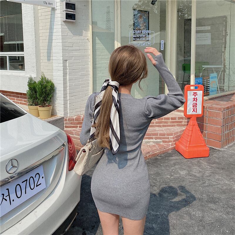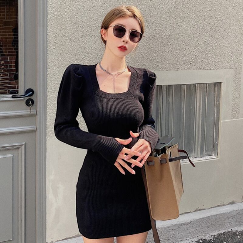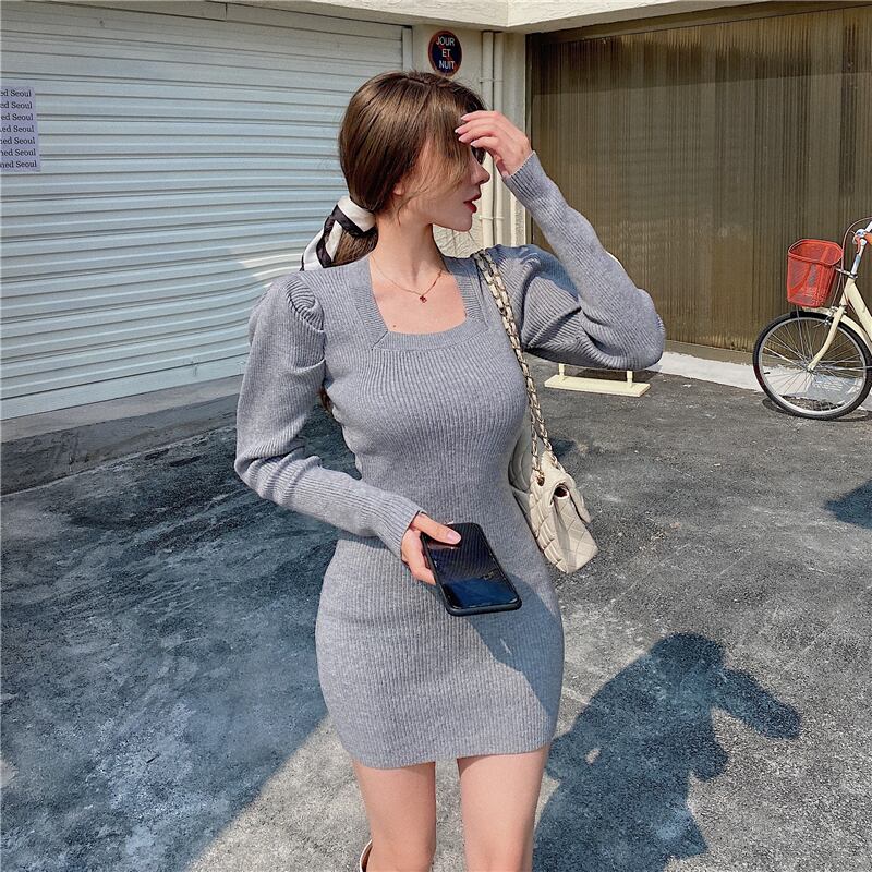スプリングスタンダードワンピーススリムゆったりニットスカート ロング レトロ 春物 スクウェア 長袖 YY32730142056