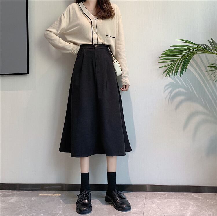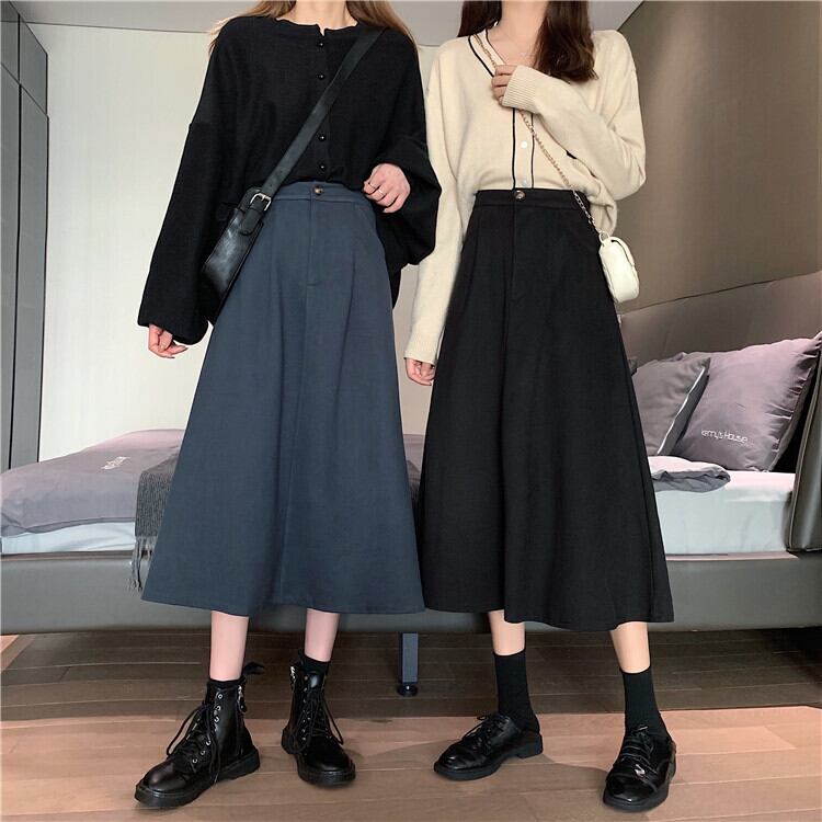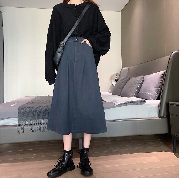 Aラインスカート レディーススプリング秋物韓国ファッションスタイルハイウェスト薄手 春物 オータム ウエスト ミドル丈 ワンナンバー51174688213