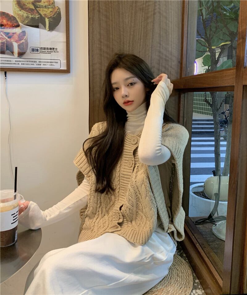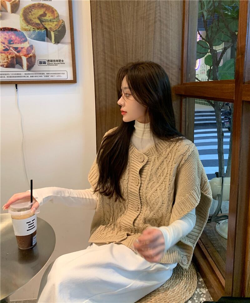 色:アプリコットボトムスシャツ,カーキボトムスシャツ,カーキ色のセーター,茶色のセーター