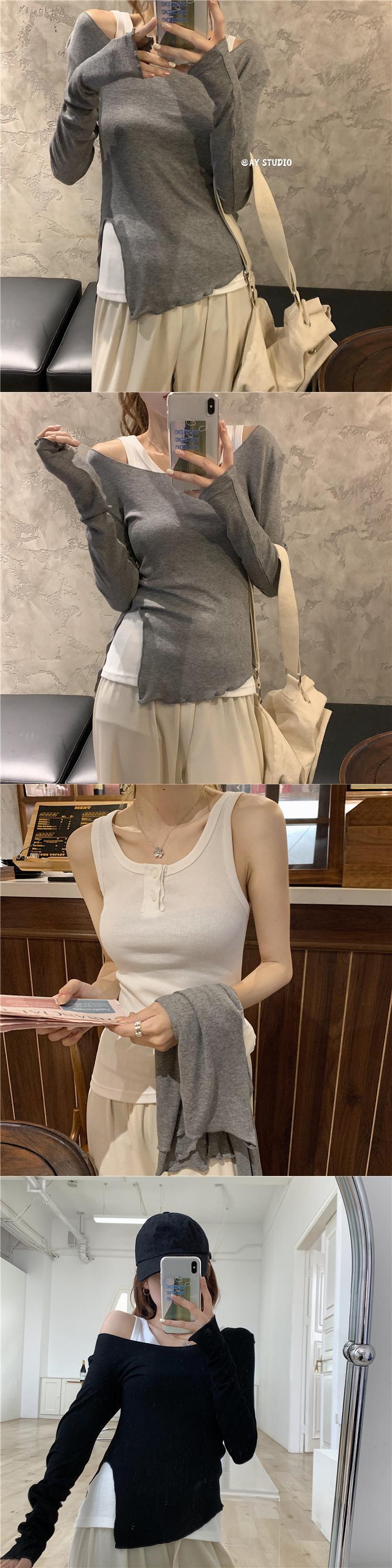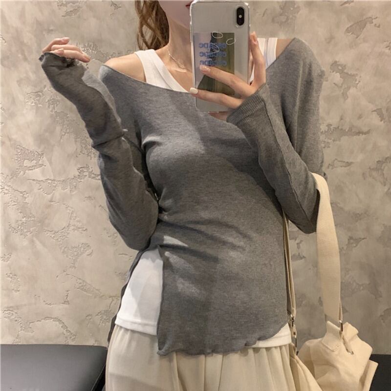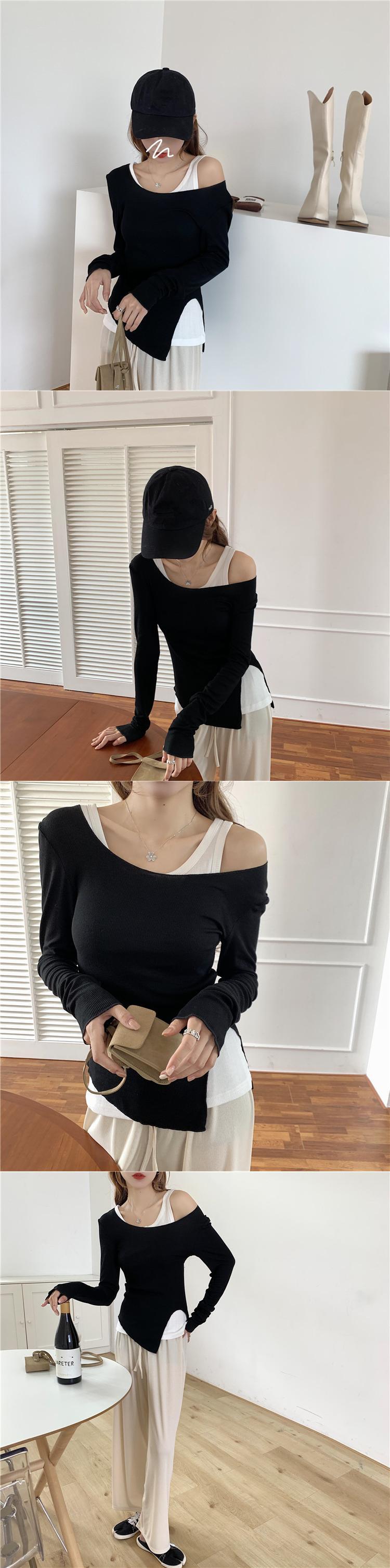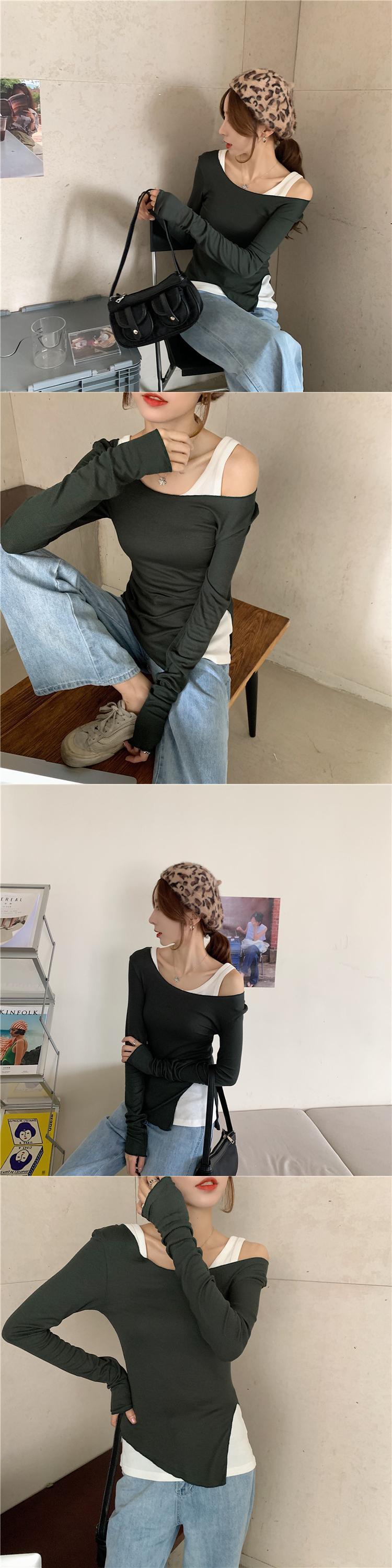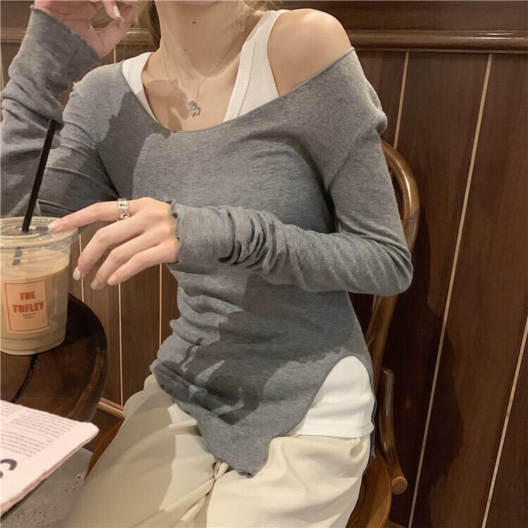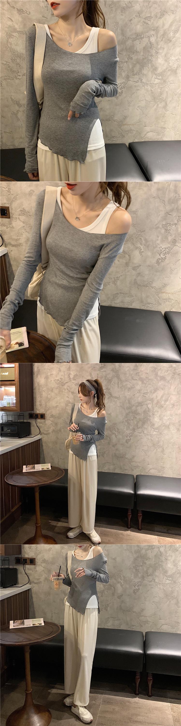 Tシャツシャツ レディース秋物ストラップレストップス ロング オータム ステッチ 長袖 YY4998788732
