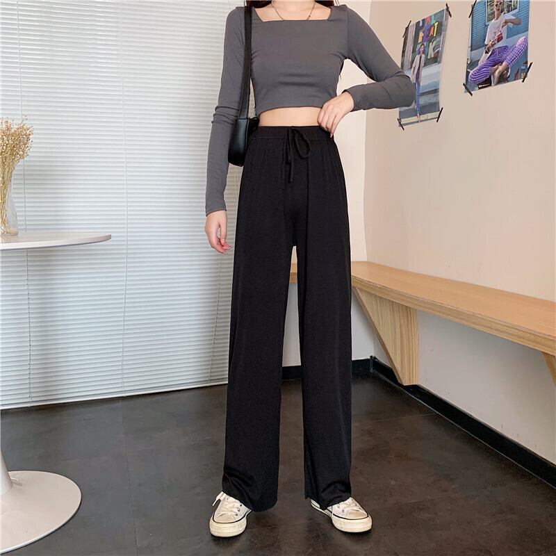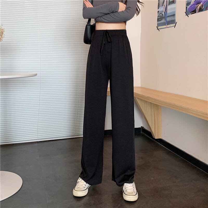 スプリングワイドレッグパンツ ハイウェストウェストルーズカジュアルレディース 春物 ワイドパンツ シルク ウエスト YY97759426722