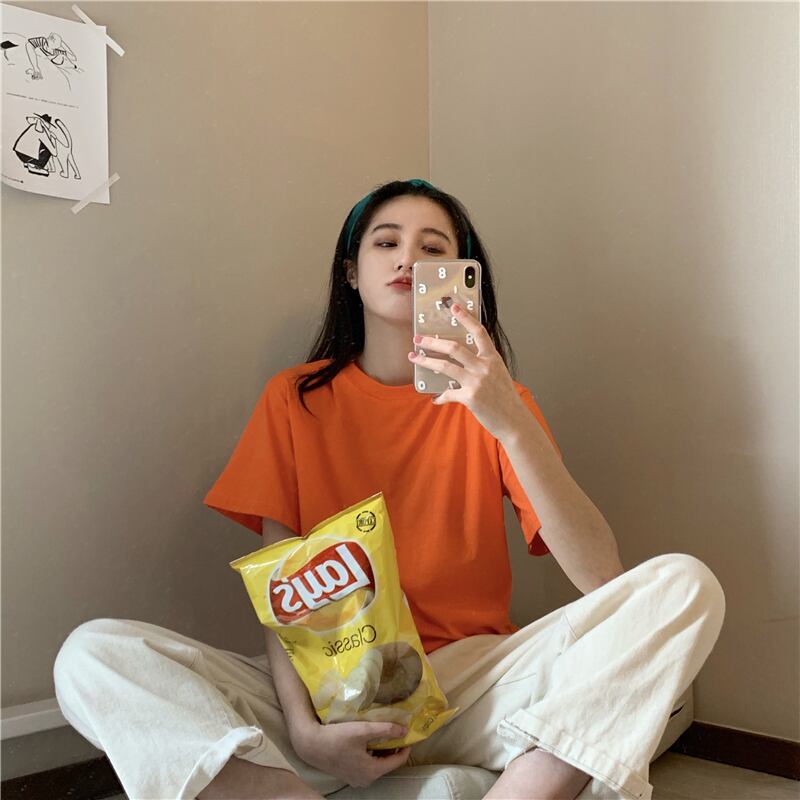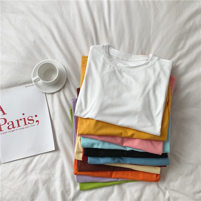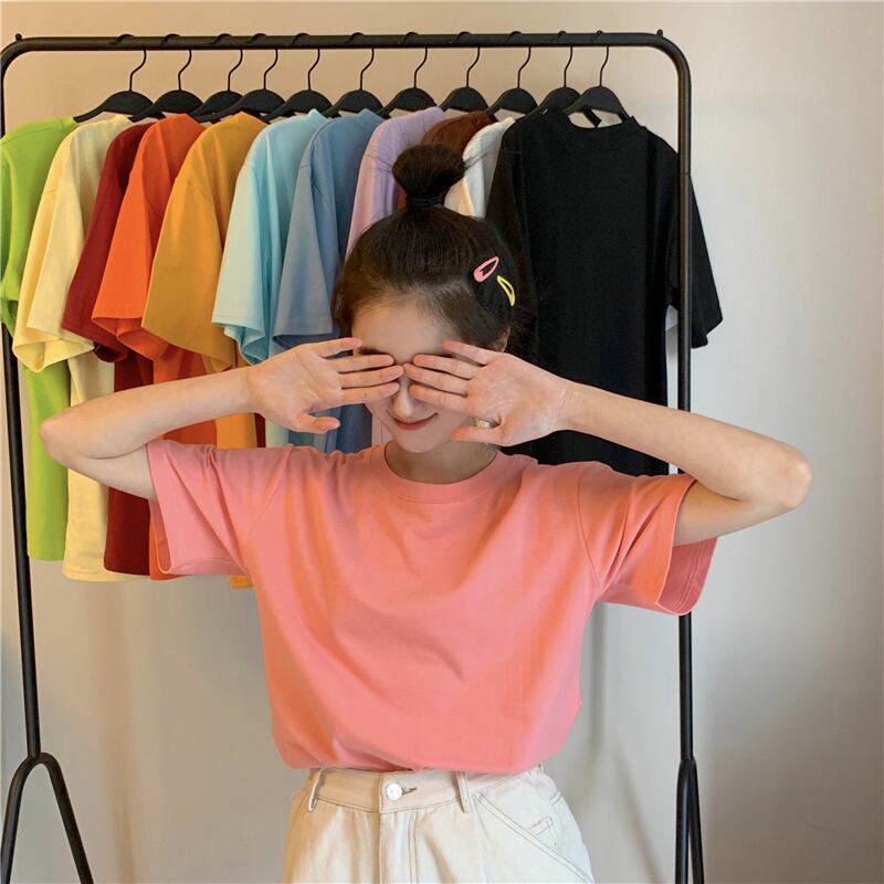 カラーTシャツシャツ スプリング韓国ファッションルーズソリッド ゆったりトップス 春物 ソリッドカラー スタイル SPM45156026773