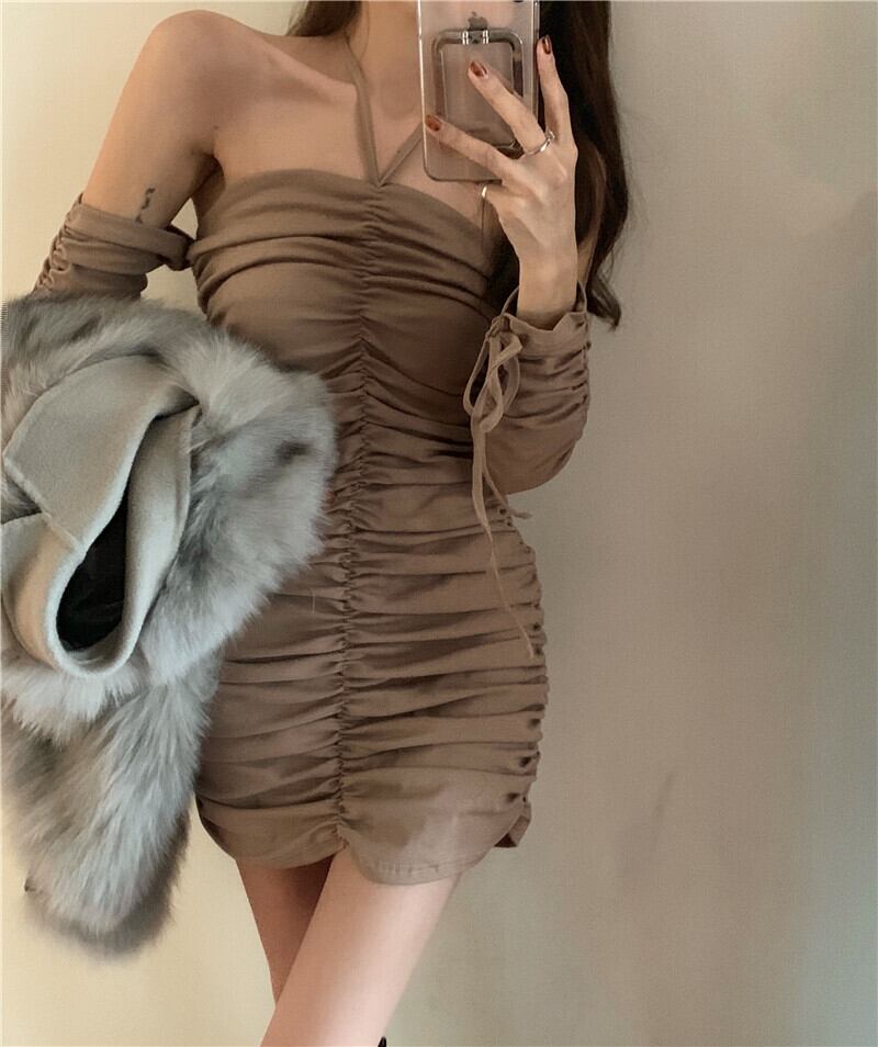 ワンピースレディースホルタースカート トップス ウィンターショート 冬物 YY54234023811