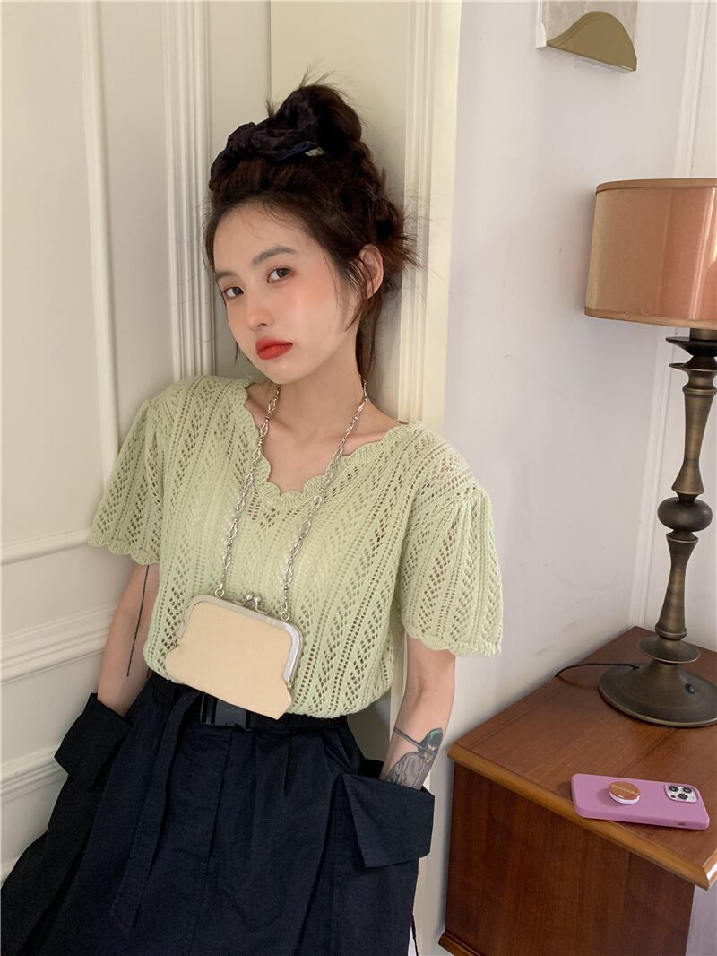 ニットセーター Vネック薄手ジャケット スプリングショート 春物 MONROE31969501941