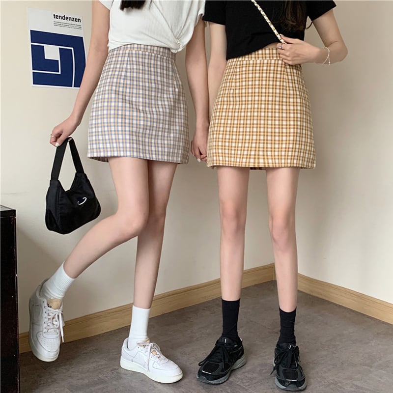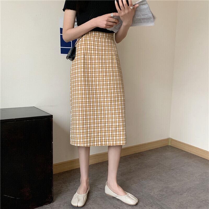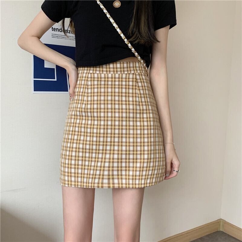 スプリング夏服韓国ファッション格子柄Aラインスカート レディースハイウェスト薄手 春物 夏物 スタイル ウエスト ミドル丈 ワンナンバー49067928733