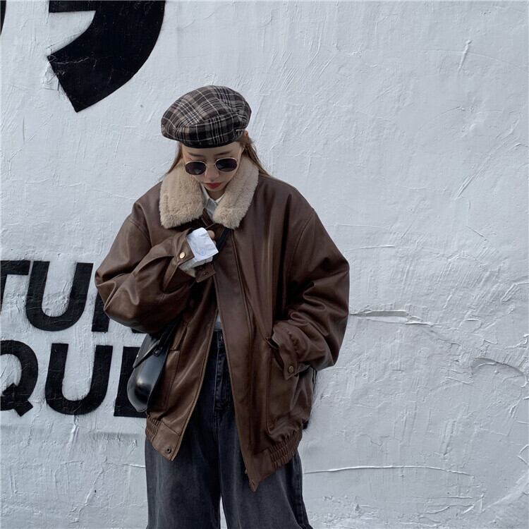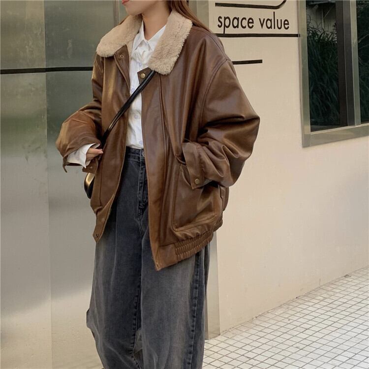 スタイルスタンダードレザージャケット レディース秋物ウィンター韓国ファッションルーズトップス レトロ ストリート オータム 冬物 YY4446138452