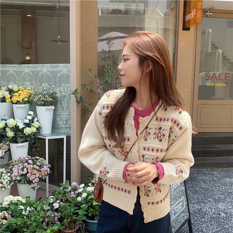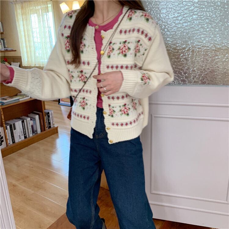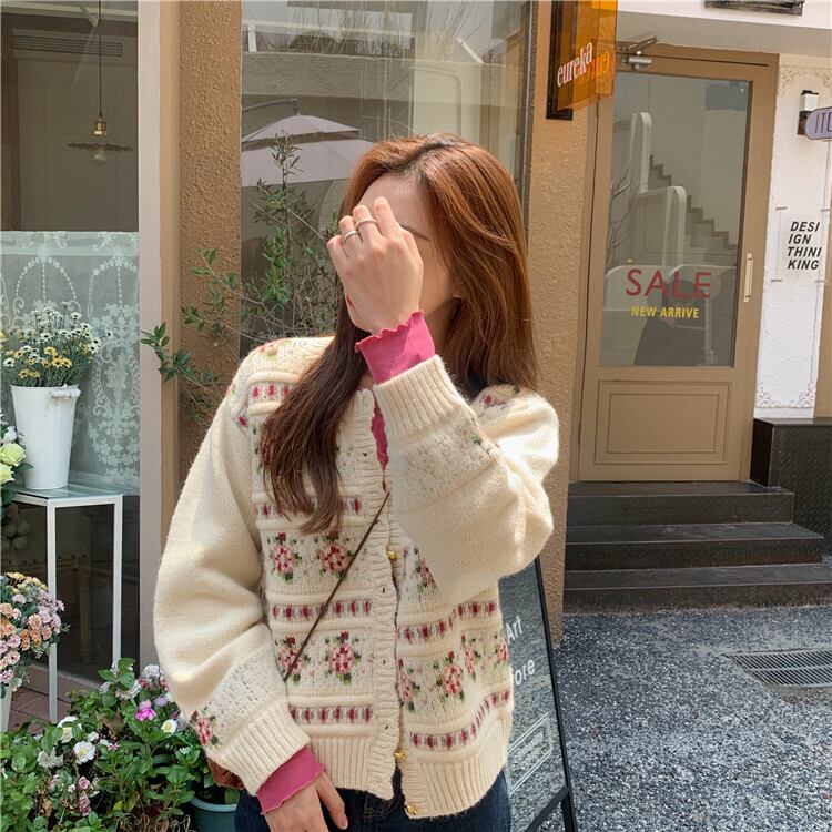 セーター ジャケット カーディガンルーズスタンダードショートニットトップス ロング レトロ 長袖 YY50915606384