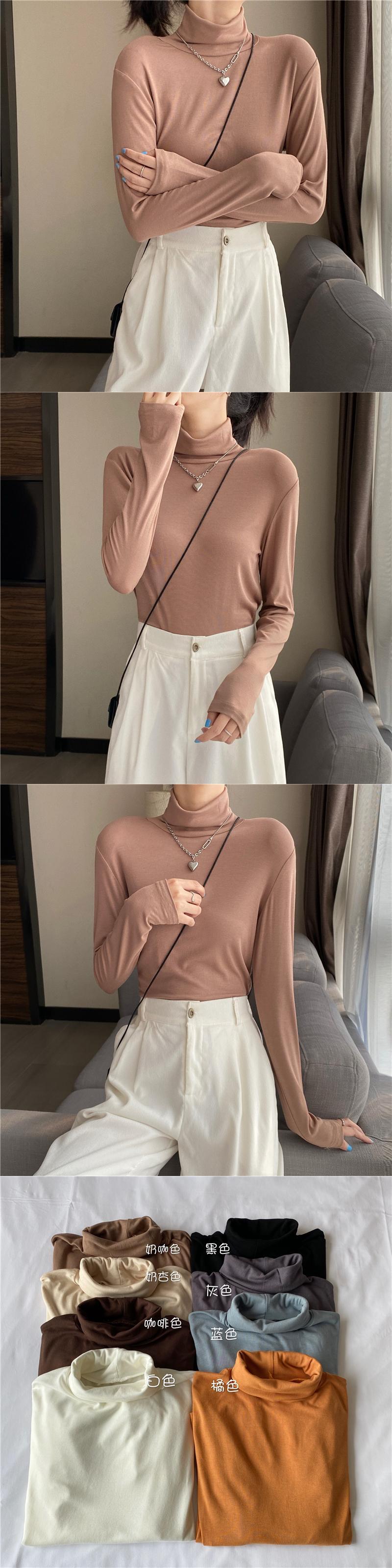 韓国ファッションカラーTシャツシャツ ウィンタースリムゆったりレディース秋物トップス ロング オータム 冬物 スタイル 長袖 YY46471288796