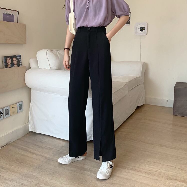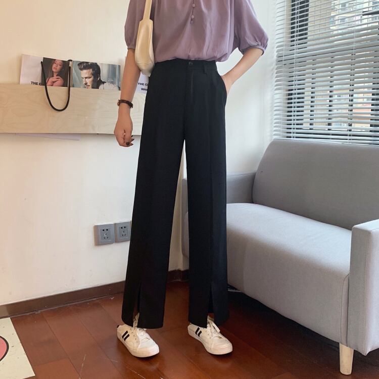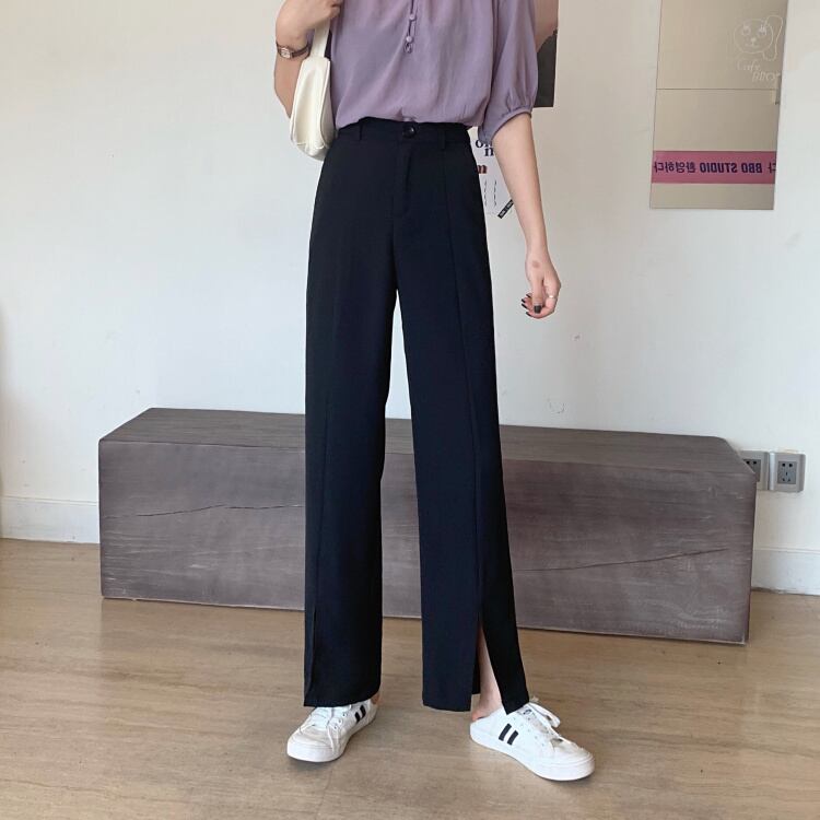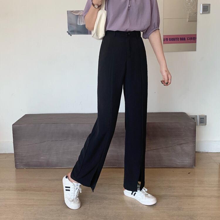 ワイドレッグパンツ レディーススプリング秋物ハイウェストウェスト薄手ルーズカジュアルブラック夏服 春物 夏物 オータム ワイドパンツ ウエスト SPM89999727869