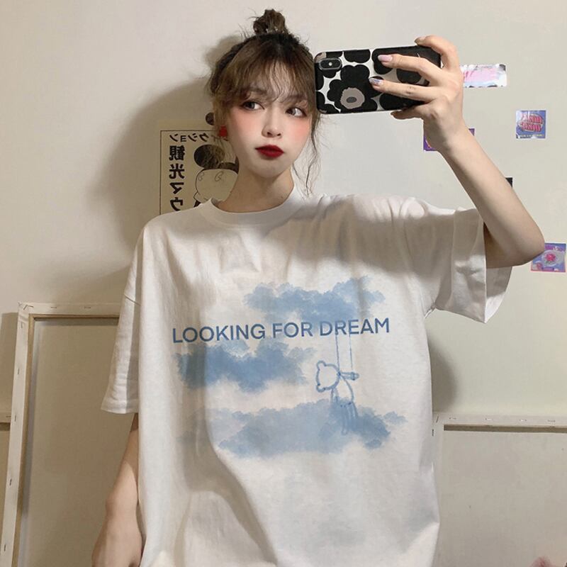 ルーズブラックTシャツシャツ レディーススプリング韓国ファッショントレンドプリントゆったりトップス 春物 スタイル SPM36032185453