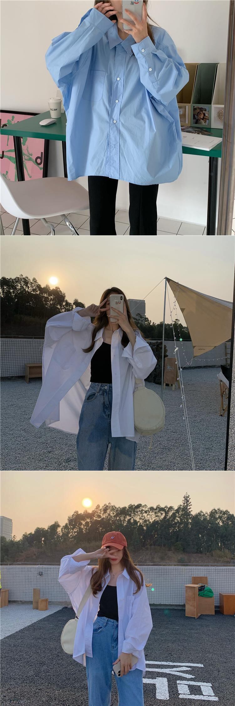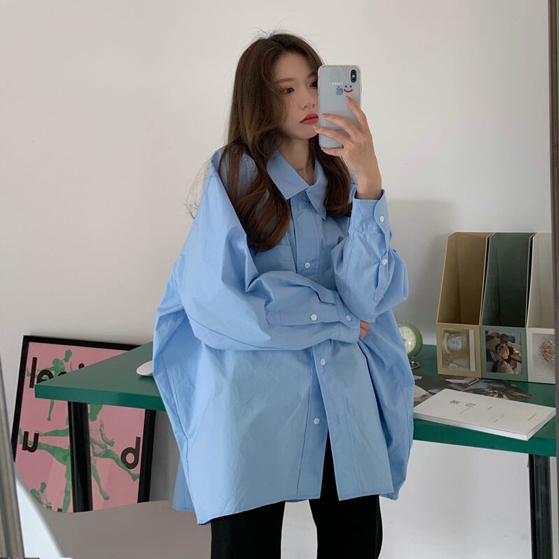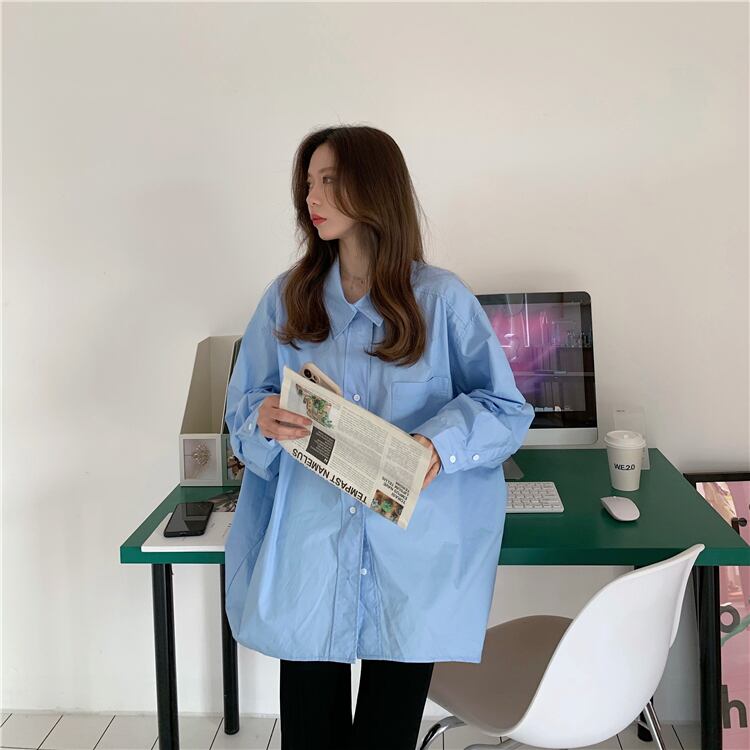 ブルーシャツ レディーススプリング秋物スタンダードスタイルトップス ルーズジャケット ロング レトロ 春物 オータム 長袖 SPM93553198833