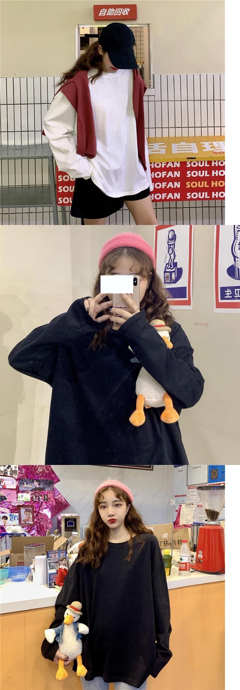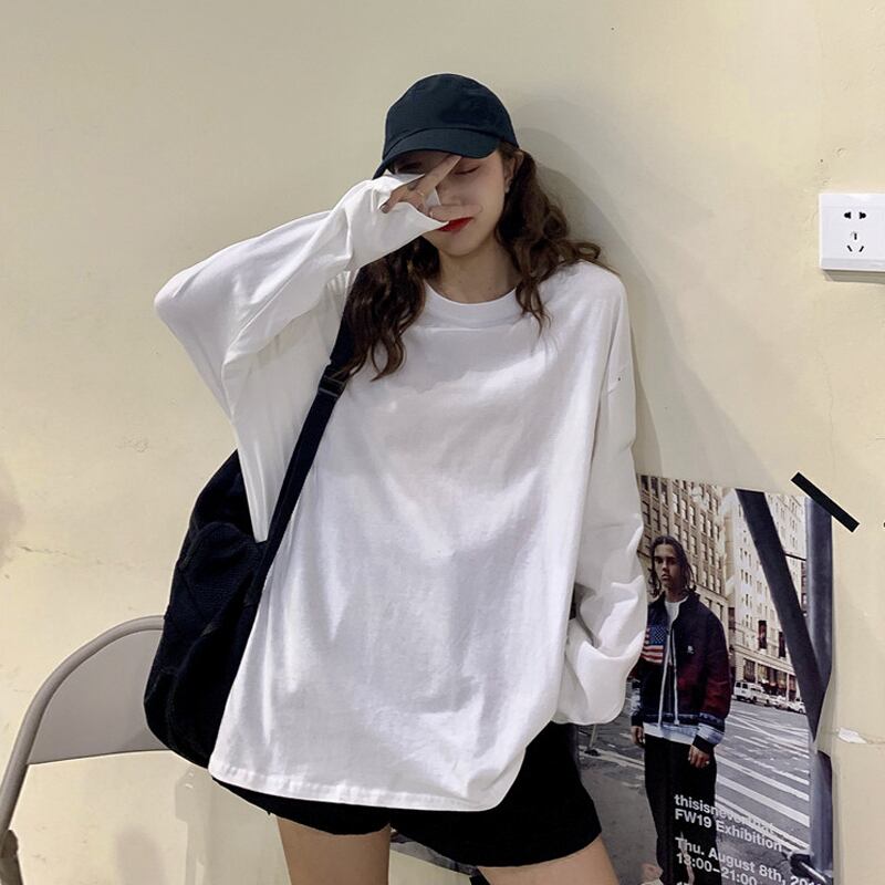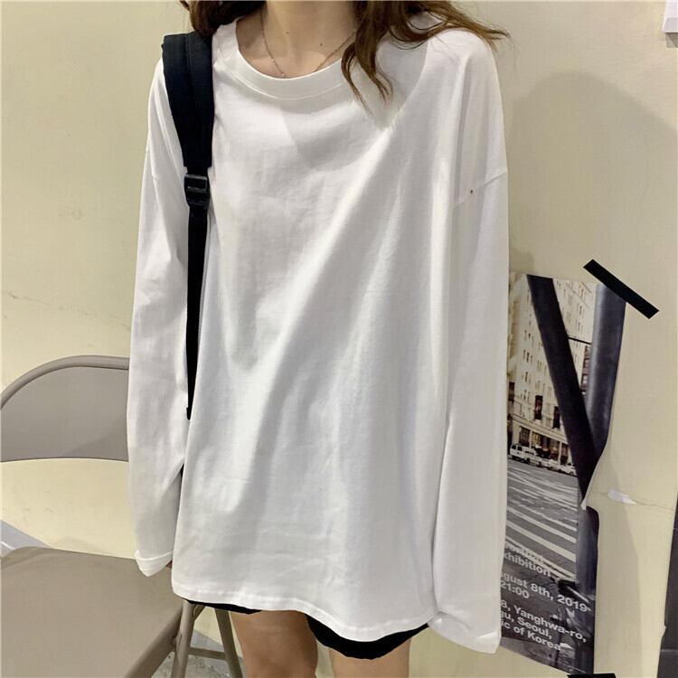 Tシャツシャツ レディーストレンドスプリングルーズ韓国ファッションホワイトゆったりトップス ロング 春物 ボーイズ 長袖 SPM15110602926