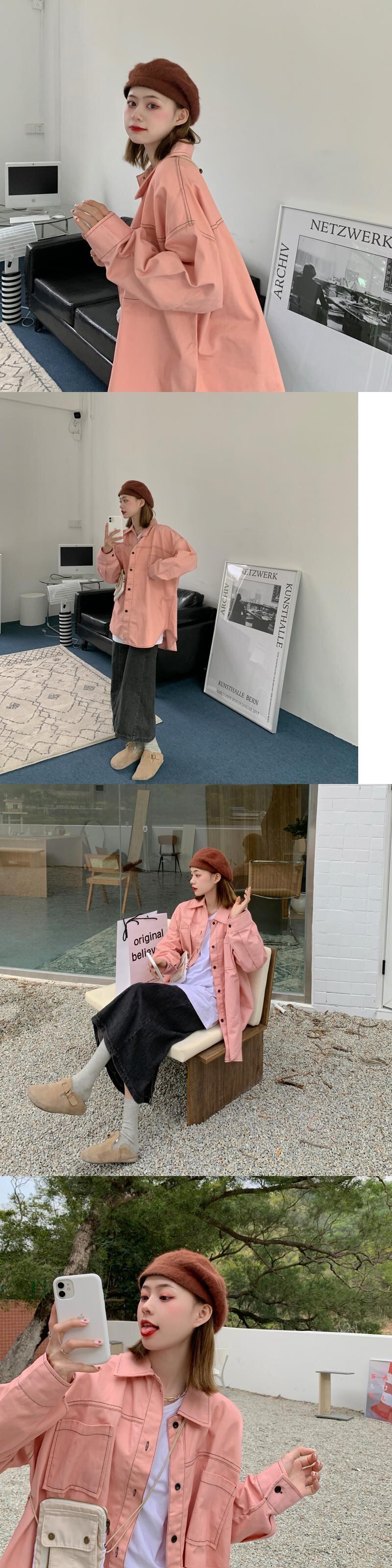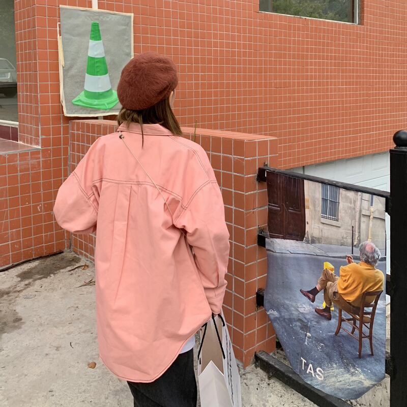 シャツ レディーススプリングスタンダードスタイルトップス 韓国ファッションルーズカジュアルジャケット ピンク レトロ 春物 SPM73538267664