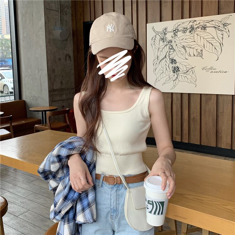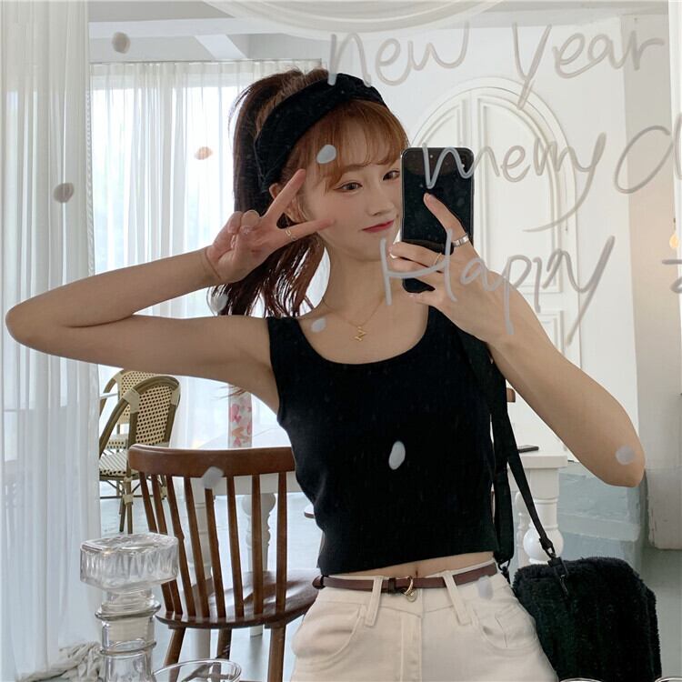 スプリング韓国ファッションニットスリムショートノースリーブゆったりトップス 半袖 ハーフスリーブ 春物 SPM19567308992