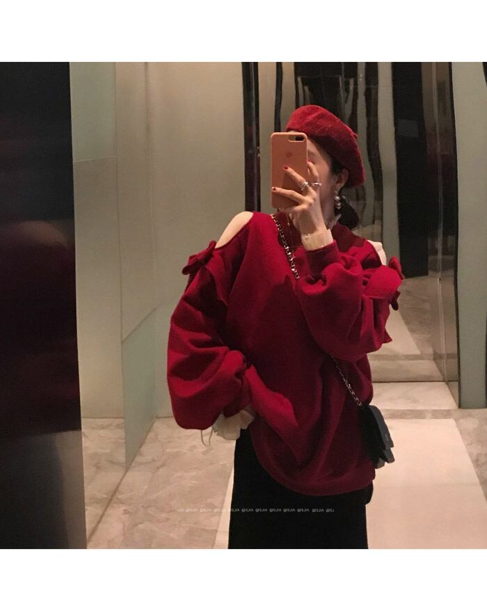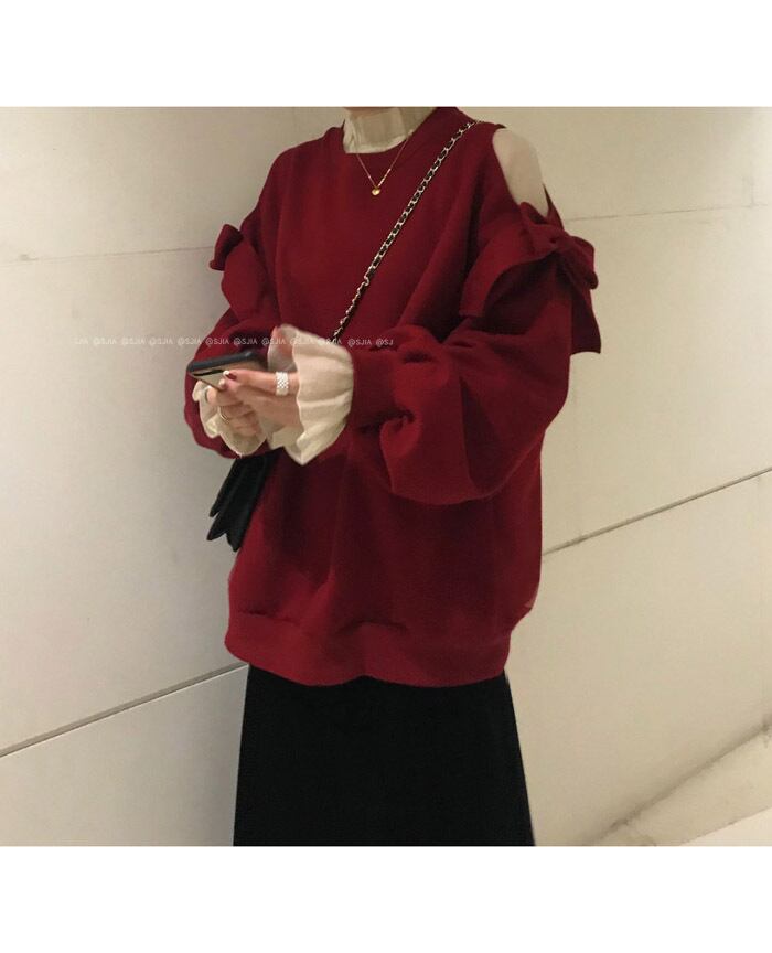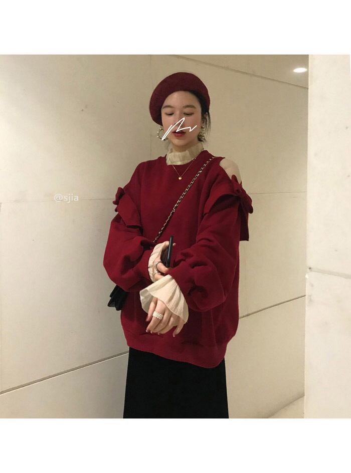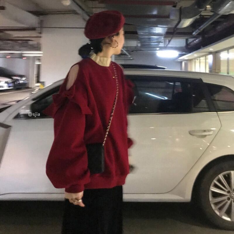 ストラップレスレッドセーター レディース厚み秋物ウィンタールーズ韓国ファッショントップス コート トレンド オータム 冬物 スタイル YY21725929780