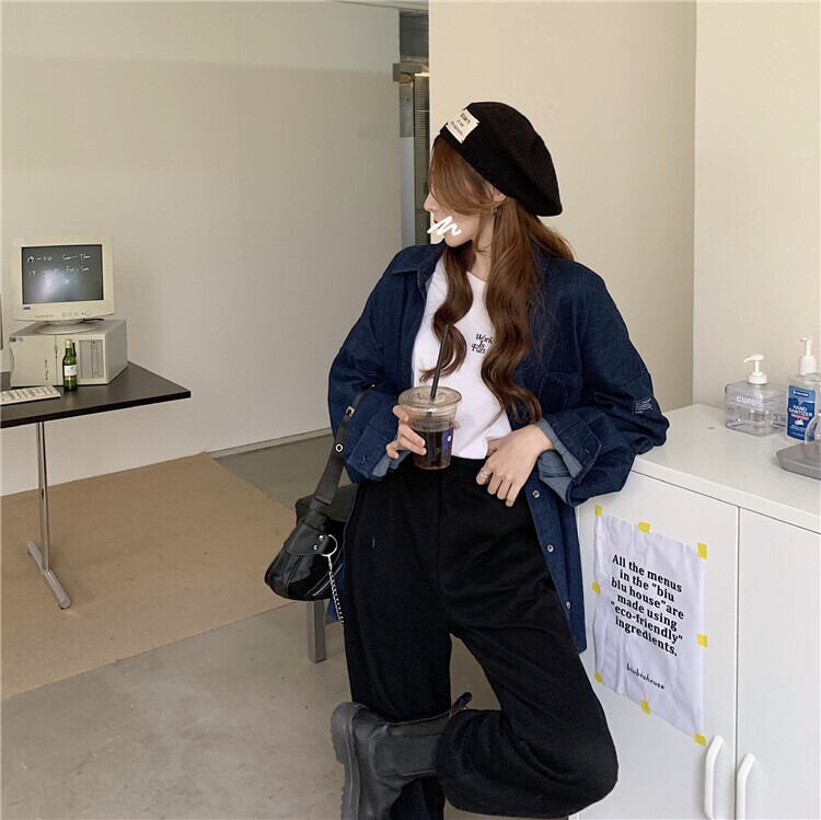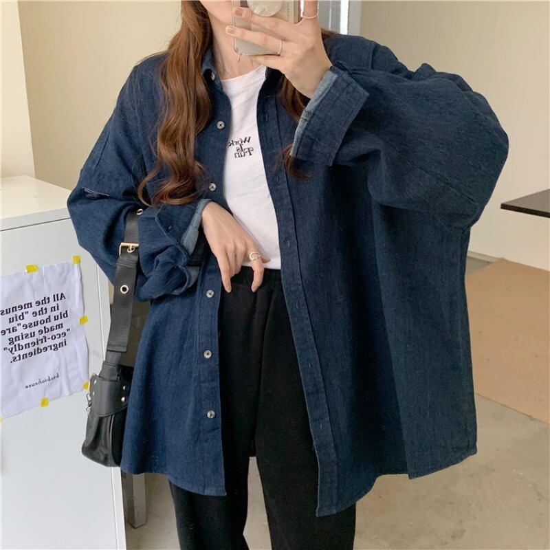 シャツ 秋物ウィンタールーズスタンダードブルージャケット トップス ロング レトロ オータム 冬物 長袖 ミドル丈 YY19785532315
