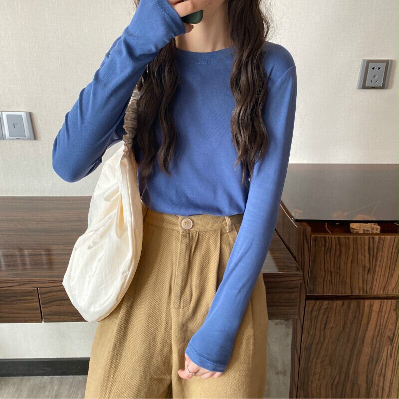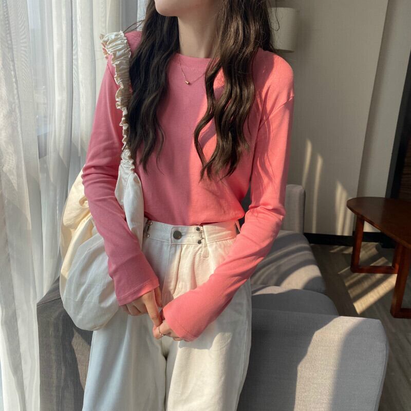 スプリング秋物ホワイトゆったりシャツ ウィンターソリッド カラーTシャツブラック ロング 春物 オータム 冬物 ソリッドカラー 長袖 ワンナンバー64961974974