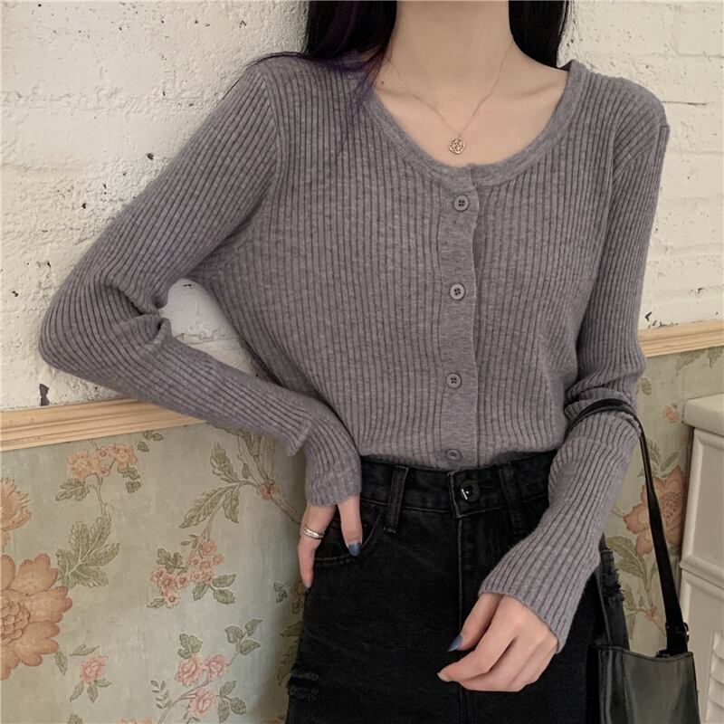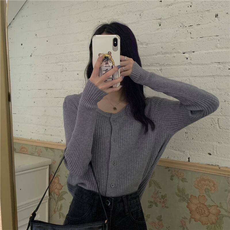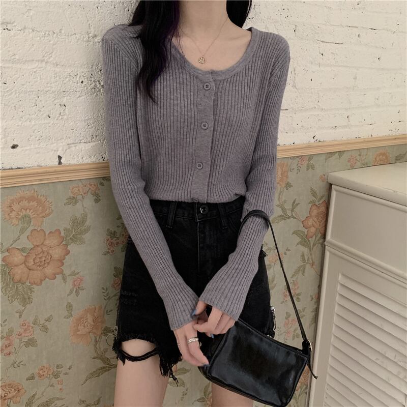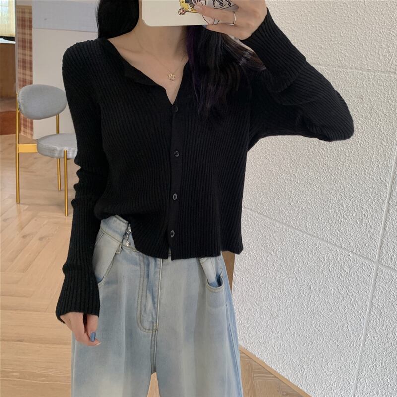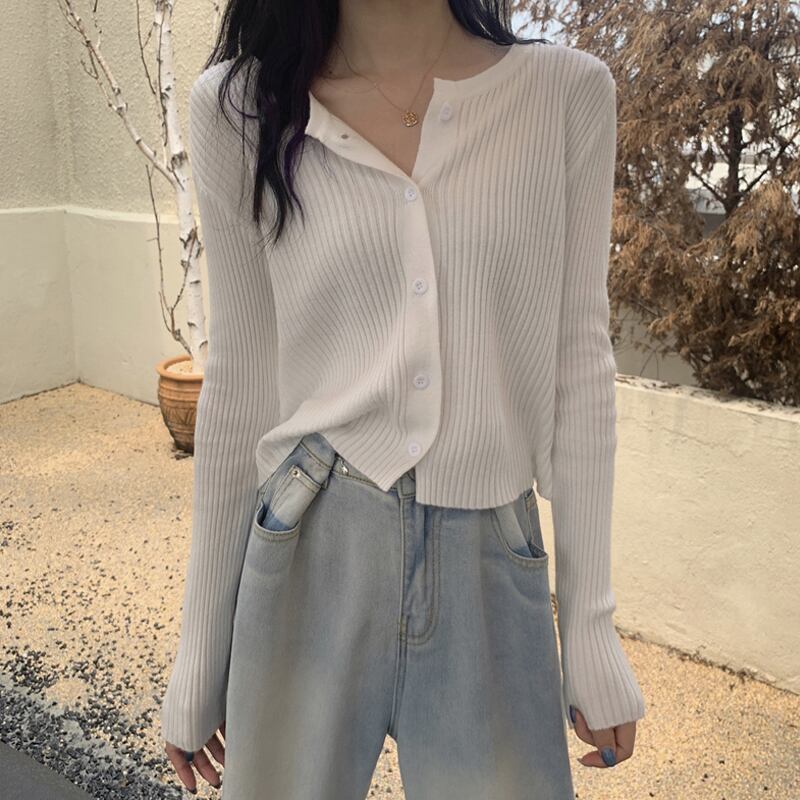 スプリング韓国ファッションホワイトショートニットセーター レディースルーズ薄手カーディガントップス 春物 SPM89466355219