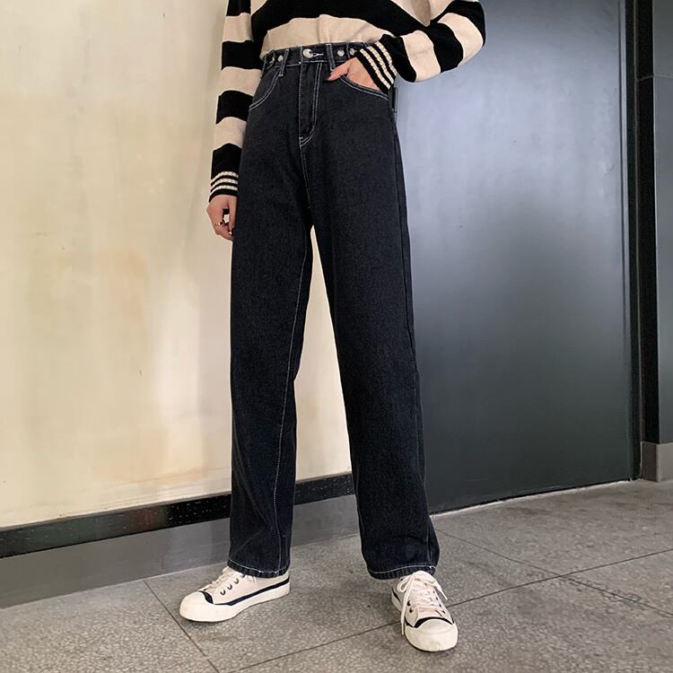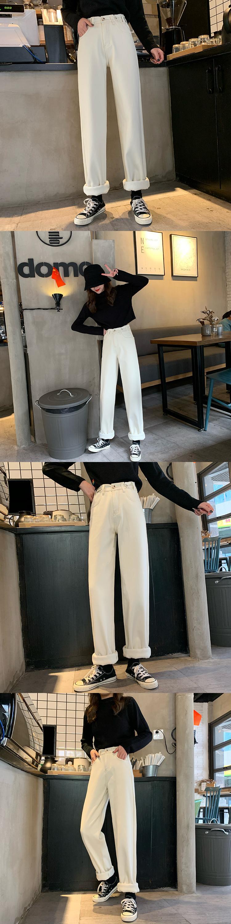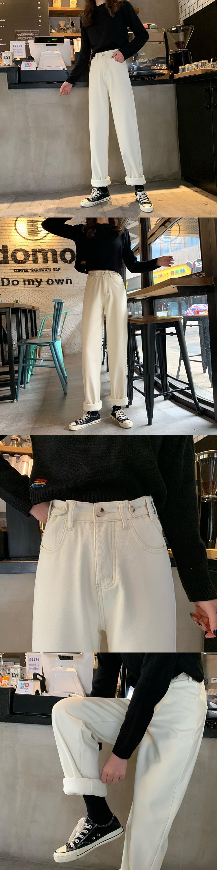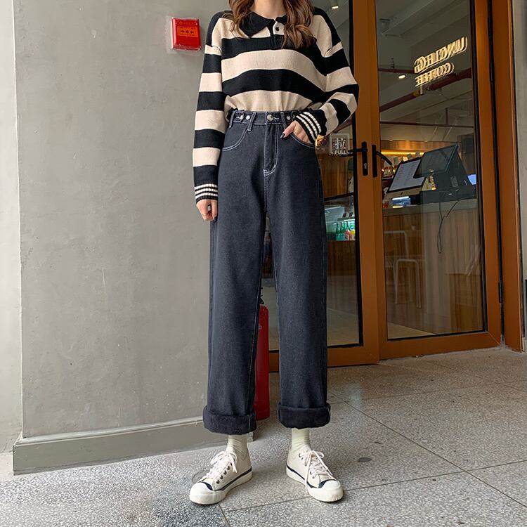 厚みパンツ 秋物ウィンター韓国ファッションハイウェストウェスト薄手スタンダードジーンズ レトロ オータム 冬物 スタイル ウエスト YY21971085039