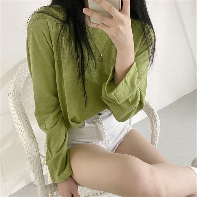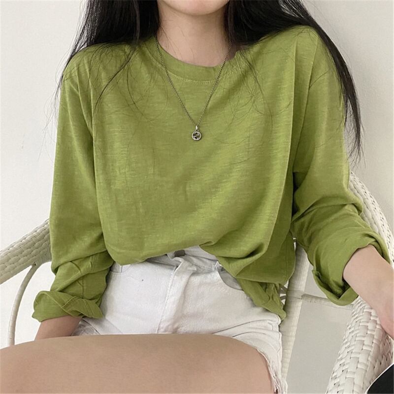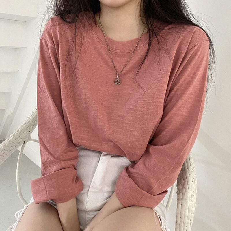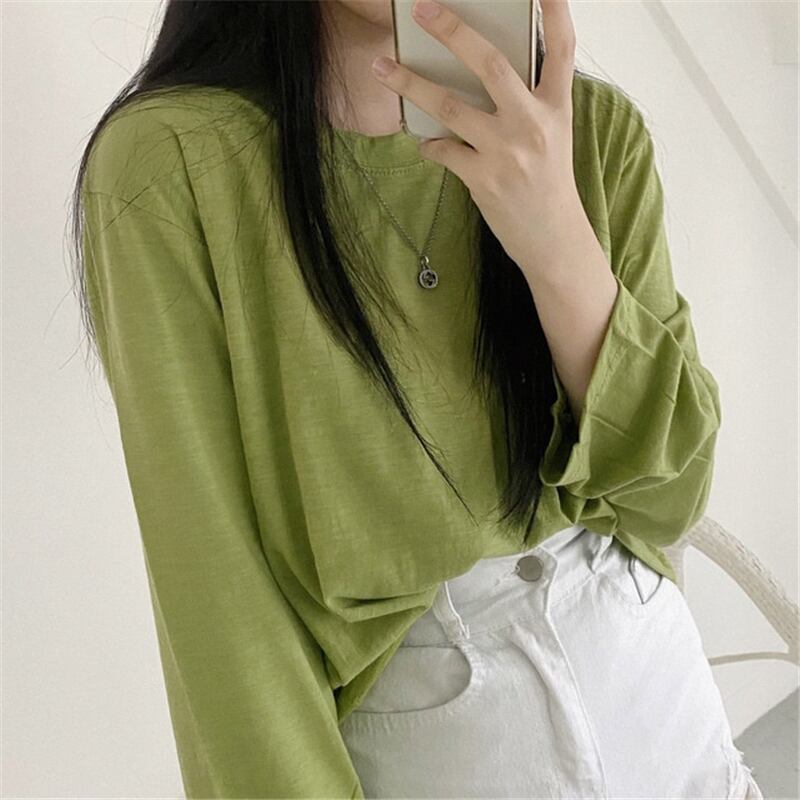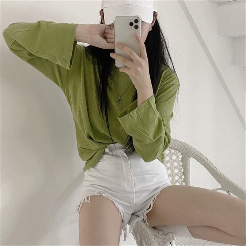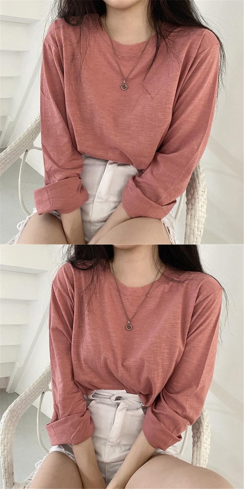 スプリング韓国ファッションスタイルルーズTシャツシャツ レディーストレンドゆったりトップス ロング 春物 長袖 SPM31724703929