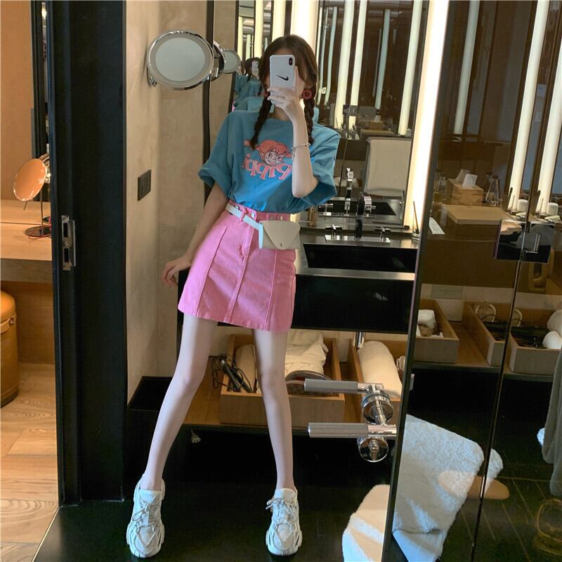 スカート レディース韓国ファッショントレンドハイウェストウェストスタンダードソリッド カラーAライン夏服薄手ショート レトロ 夏物 ソリッドカラー スタイル ウエスト YY55928622260