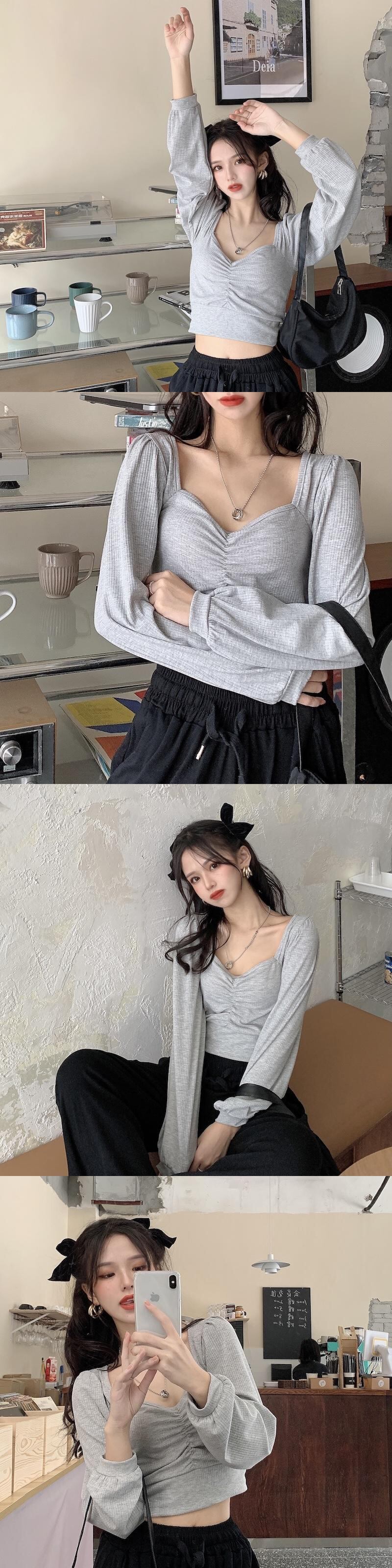ゆったりシャツ スプリングスタイルショートTシャツスリーブVネックトップス ランタンスリーブ 春物 ワンナンバー23845010686