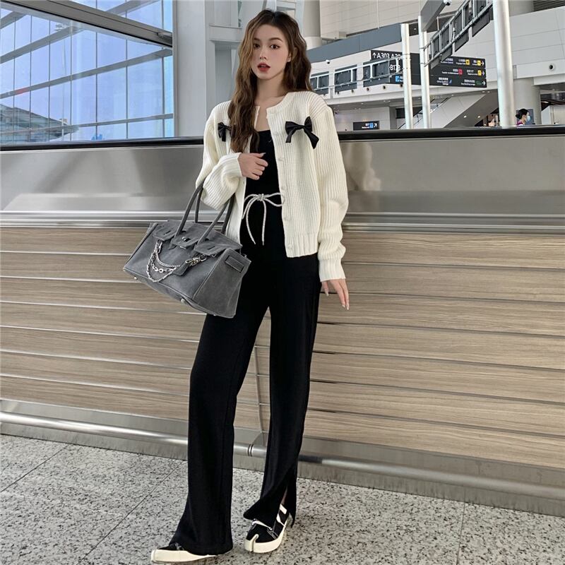 色:ボウニットカーディガン,ドローストリングスプリットパンツ