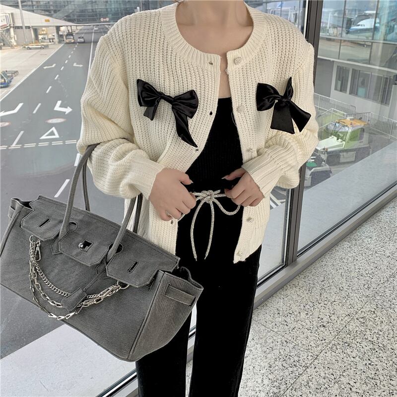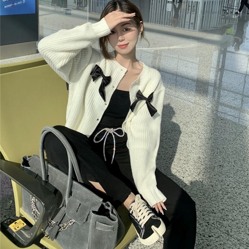 スプリングニットカーディガンセーター ジャケット ギャザーハイウェストウェストパンツ レディーストレンド リボン 春物 ウエスト YY54059066447