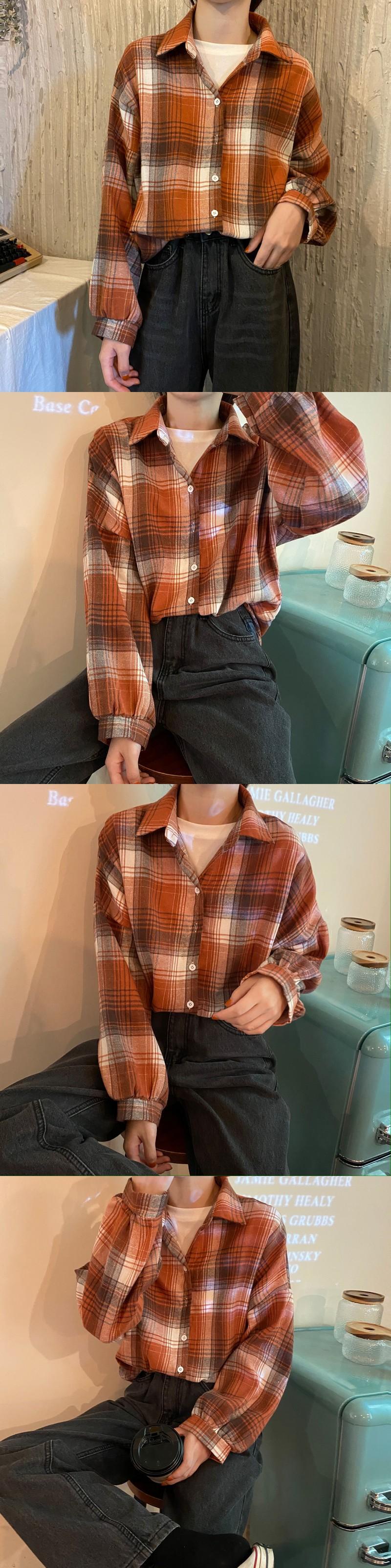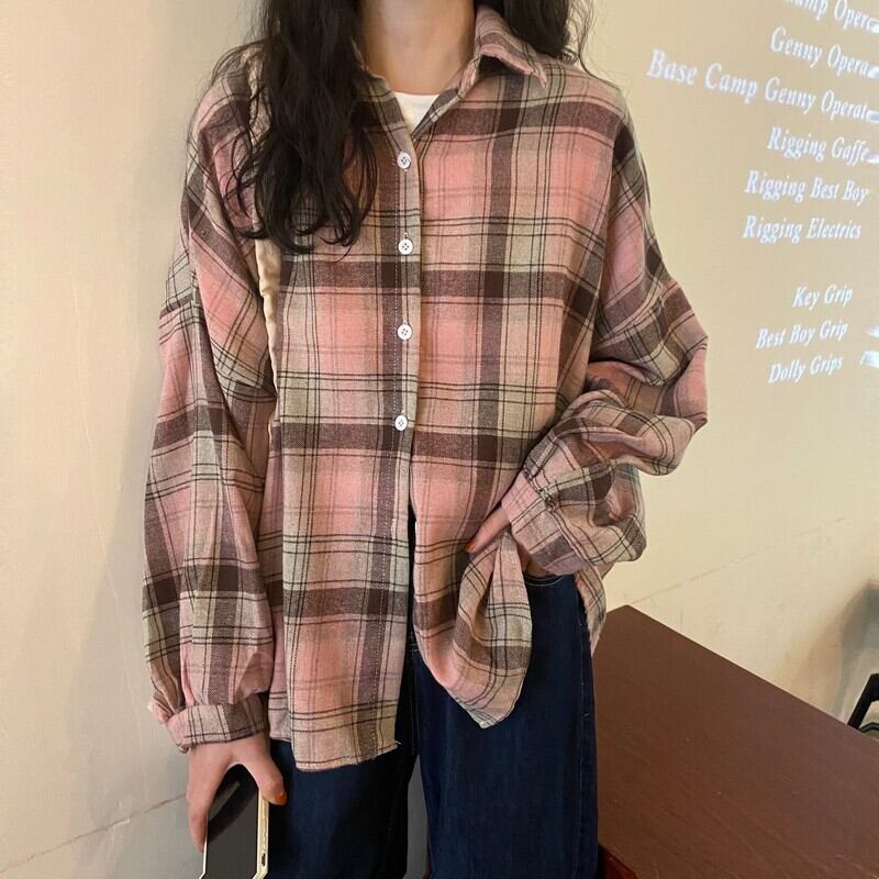 韓国ファッションルーズ薄手格子柄シャツ ジャケット スプリング秋物ブラウス ロング 春物 オータム スタイル 長袖 ワンナンバー55868398493