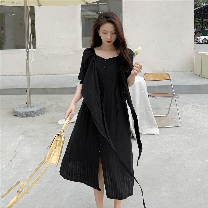 スプリングワンピースレディーススタンダードウェストソリッド カラースカート Aライン レトロ 春物 ソリッドカラー スクウェア ウエスト ミドル丈 YY23182420065