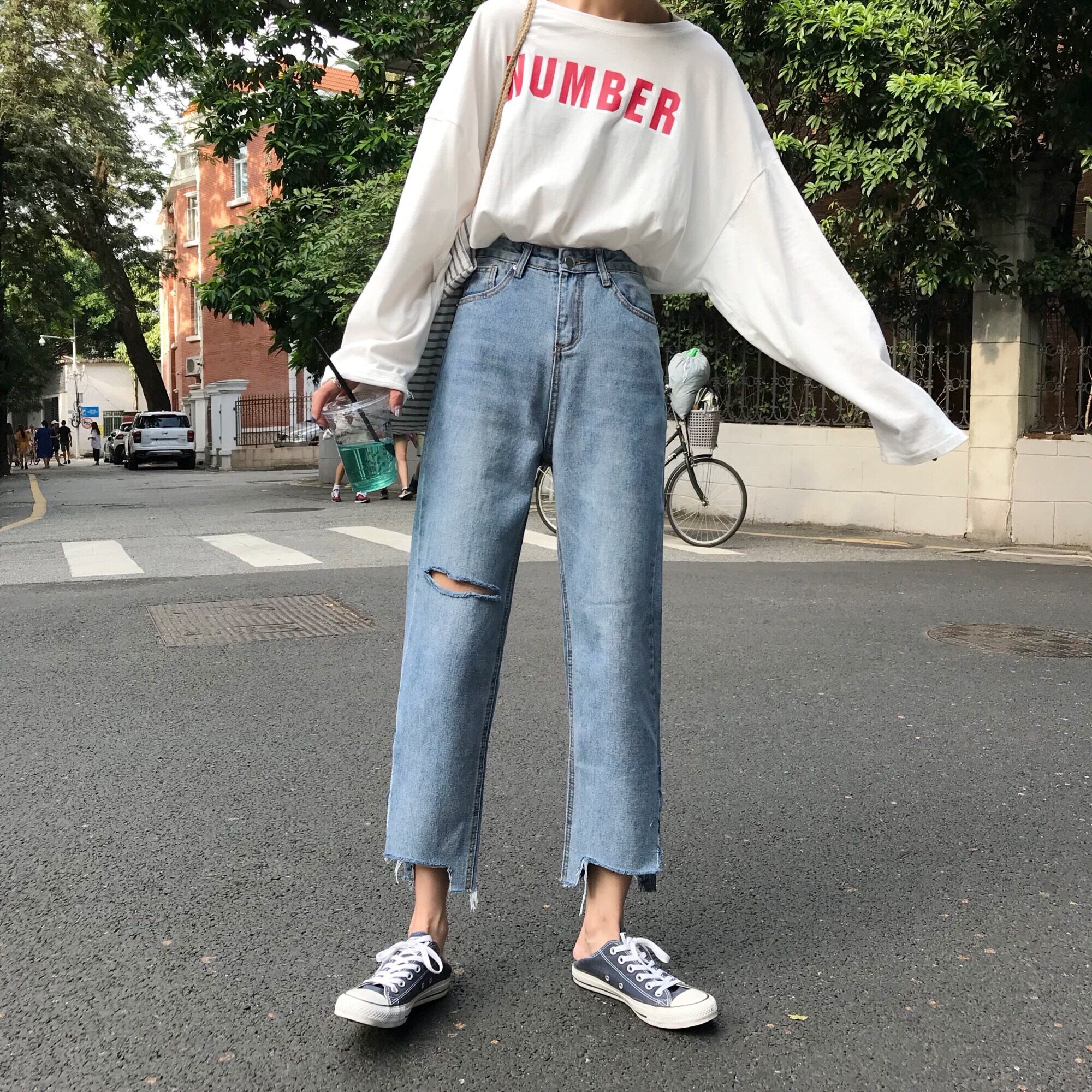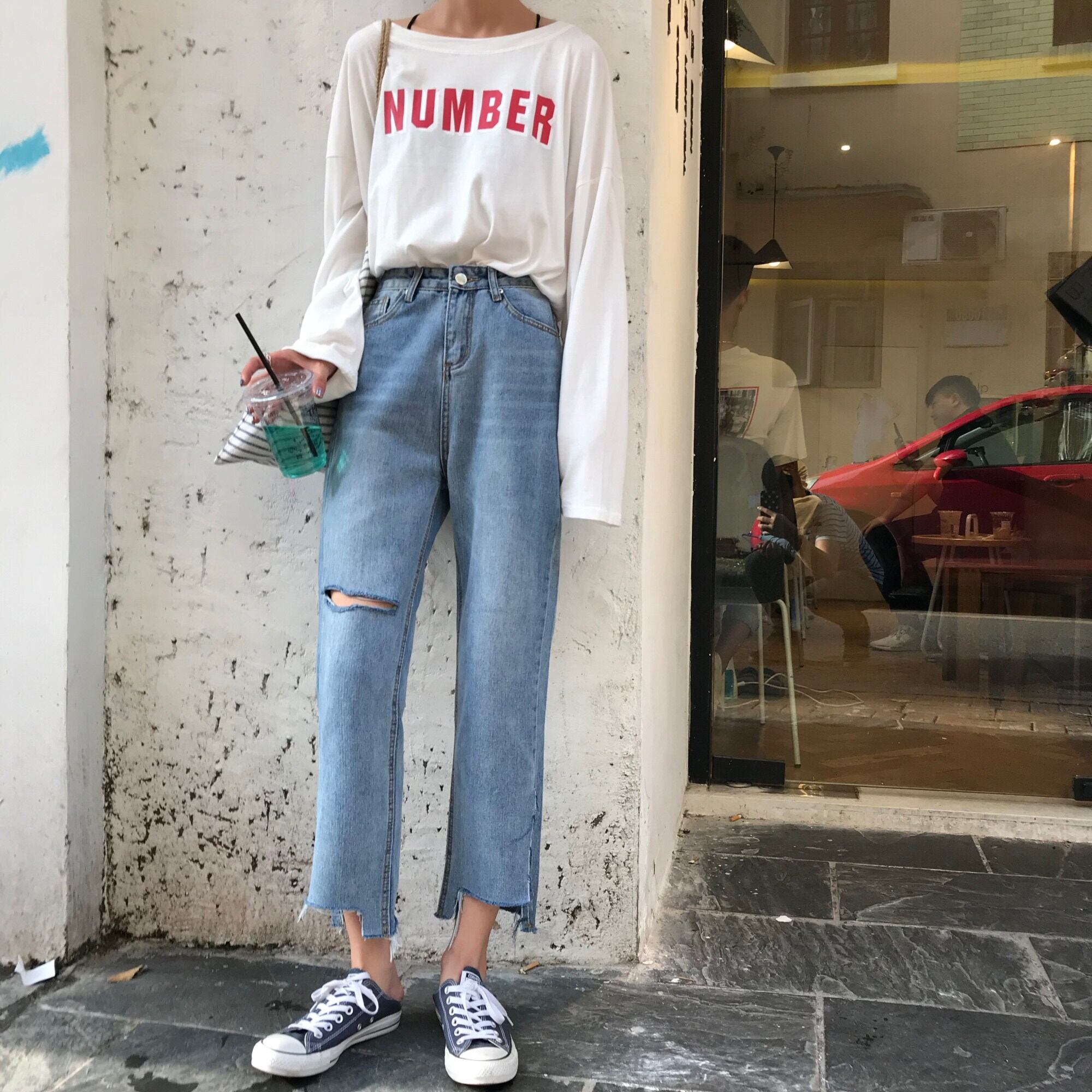 ジーンズ スプリング韓国ファッションルーズパンツ ウェスト薄手 春物 ウエスト YY26515573740