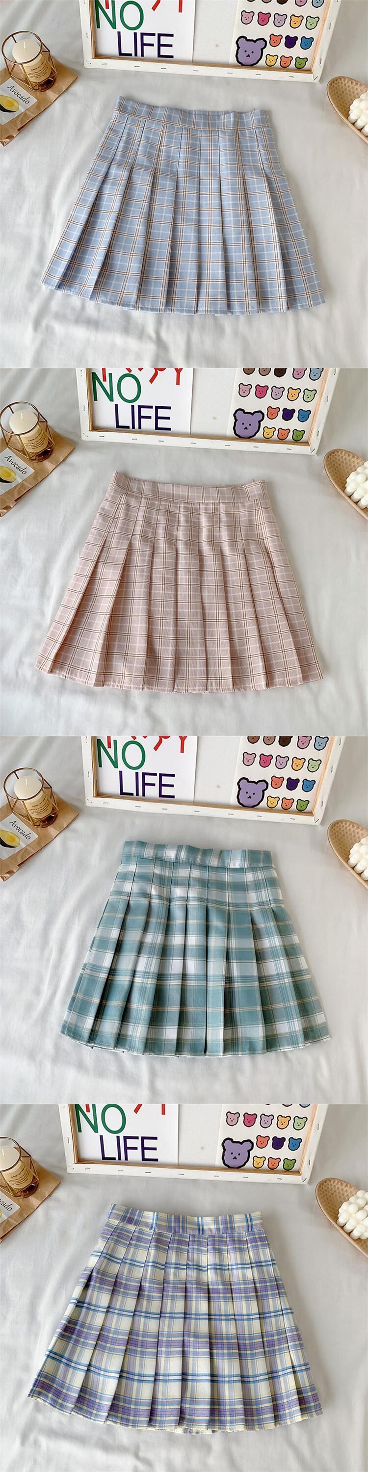 韓国ファッションスタンダードハイウェスト格子柄プリーツスカート スプリング夏服スリムレディース レトロ 春物 夏物 スタイル ウエスト YY11036428529