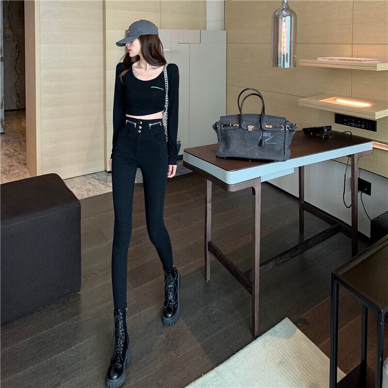 ブラックジーンズ スプリング夏服薄手ハイウェストパンツ 春物 夏物 ウエスト YY73536225997