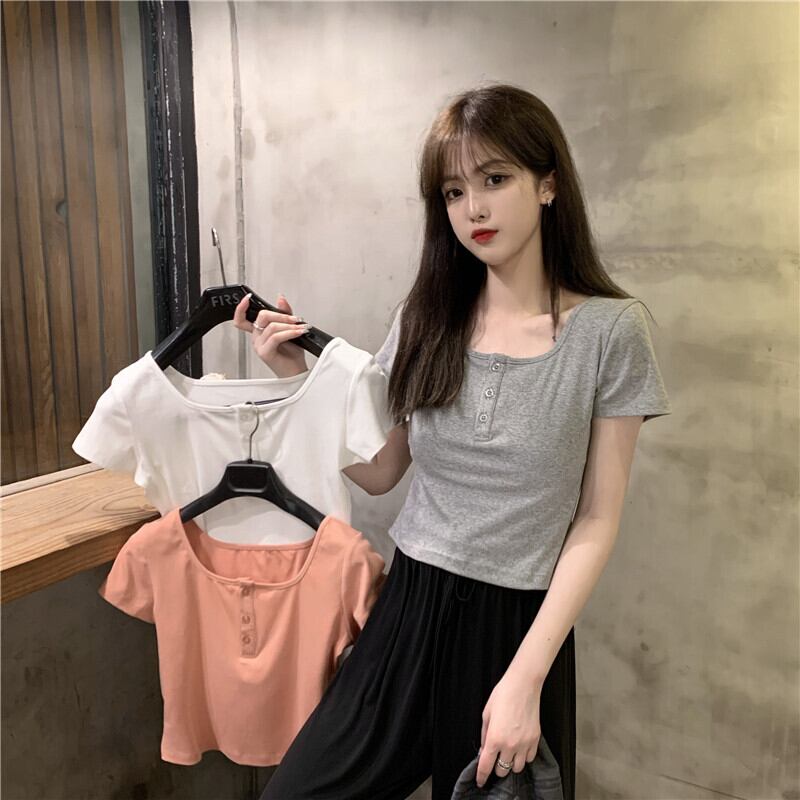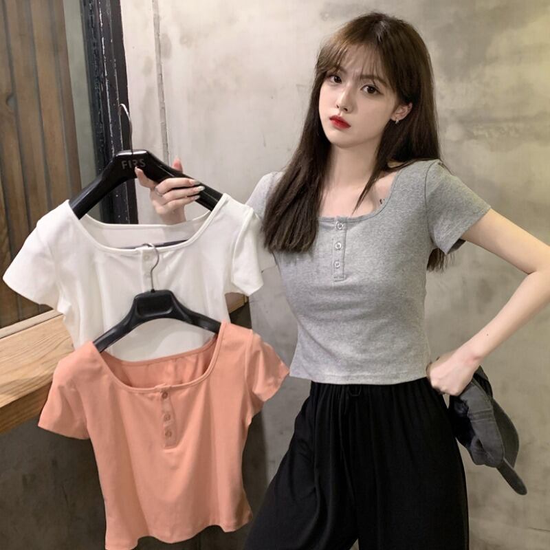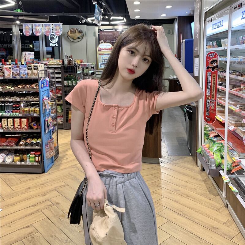 ホワイトショートTシャツシャツ ゆったりスプリング夏服スタイルカラートップス トレンド 春物 夏物 スクウェア ワンナンバー16503923100