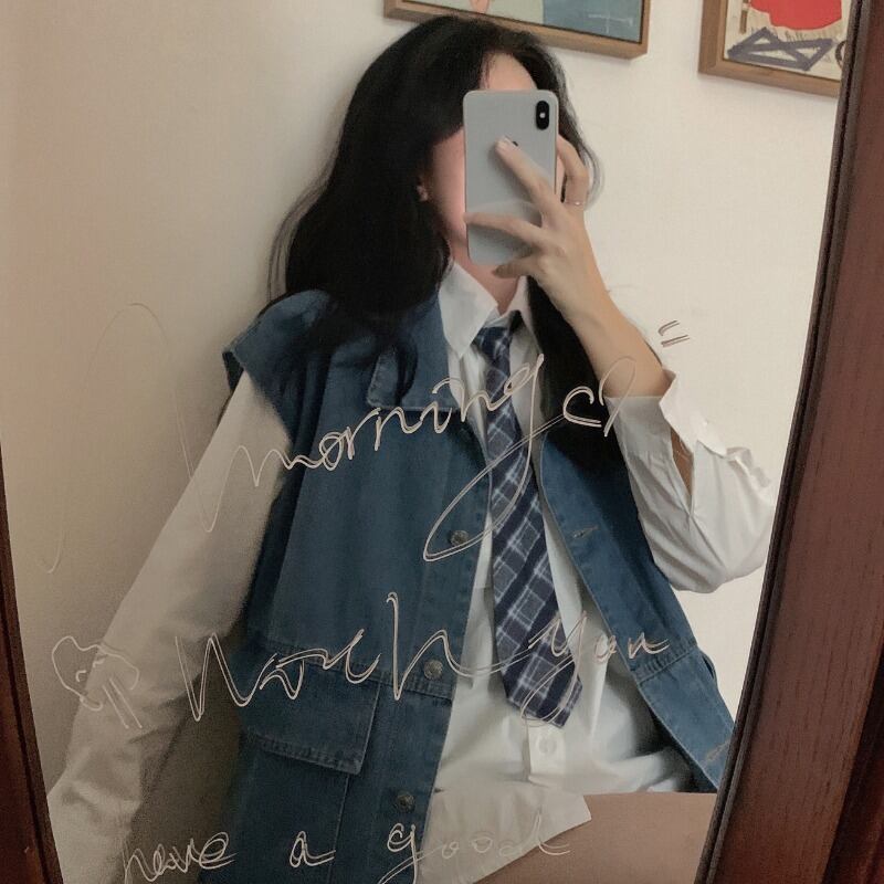 色:カウボーイベスト,ネクタイと白いシャツ