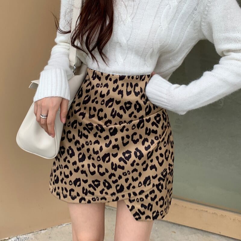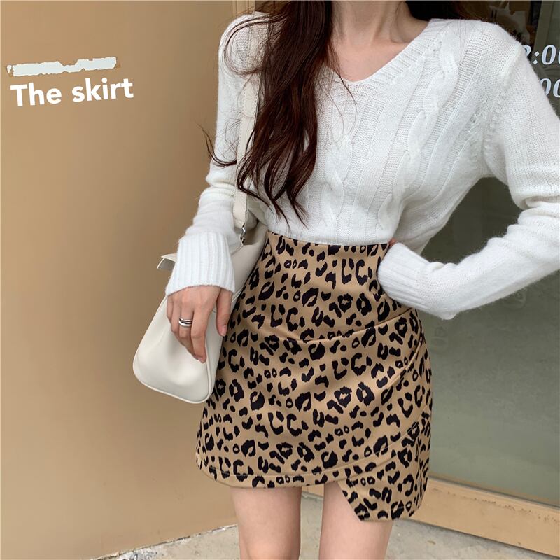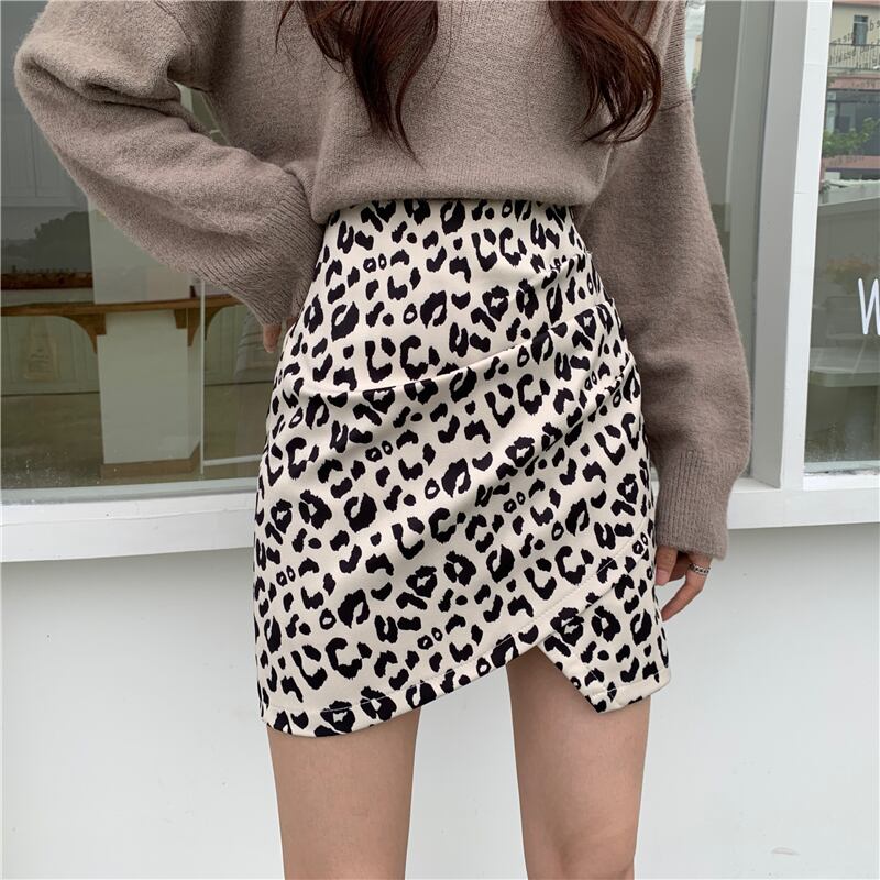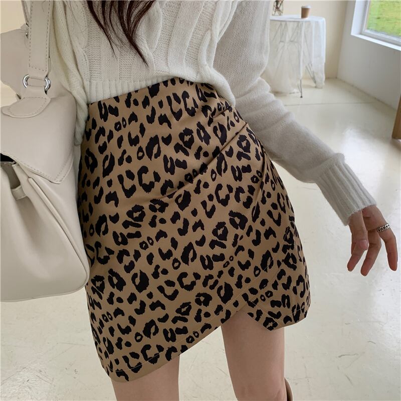 秋物レオパードプリント柄スカート ハイウェストウェスト薄手Aラインショート オータム ウエスト YY37069451232