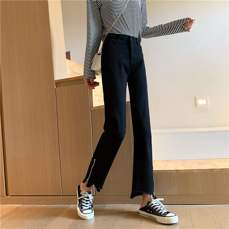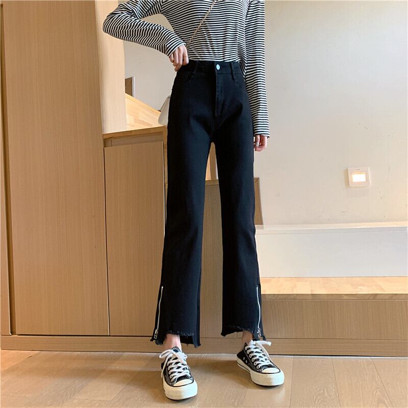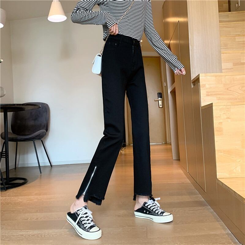 スプリング韓国ファッションハイウェスト薄手ジッパーカジュアルパンツ ジーンズ 春物 スタイル ウエスト YY63399039237