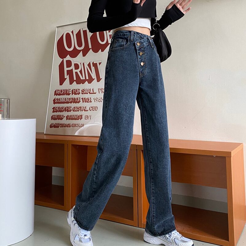 ハイウェストウェストジーンズ スプリングスタンダードスタイルパンツ ルーズ レトロ 春物 ウエスト SPM46691820508