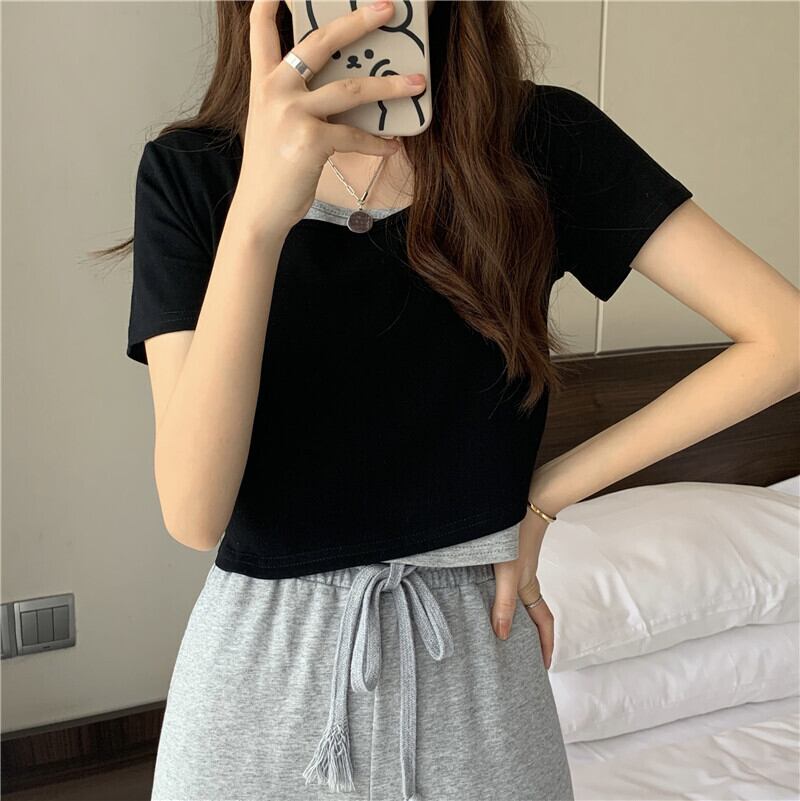 夏服ゆったりシャツ ショートトップス 韓国ファッションTシャツレディーストレンド 夏物 YY42492771355