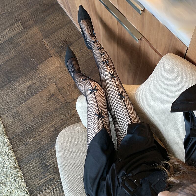 スプリング夏服ブラックリボンネットストッキング 薄手ソックス レギンス 春物 夏物 タイツ YY14617510167