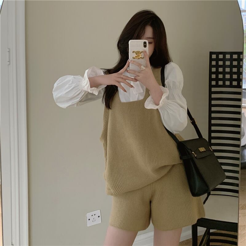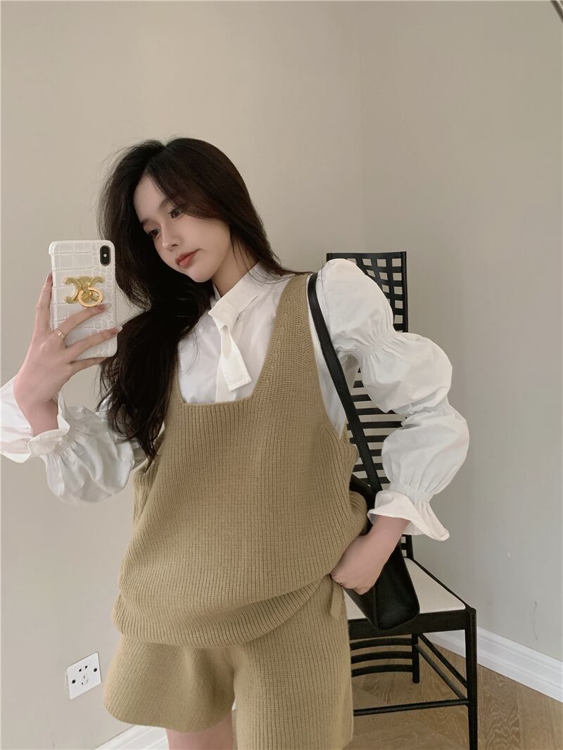 色:カーキベスト,白のシャツ,カーキショートパンツ