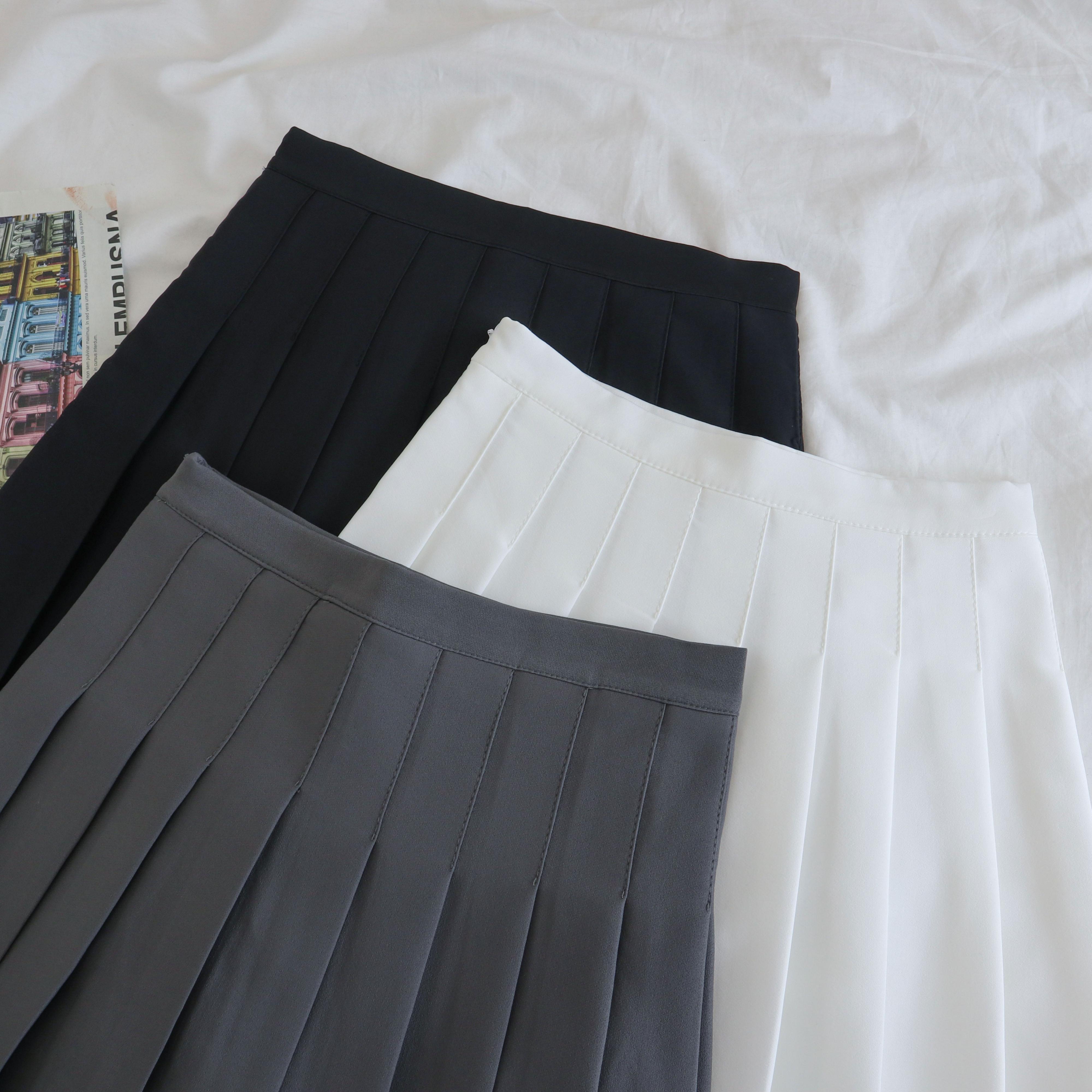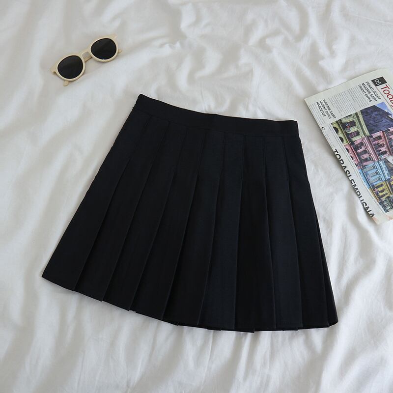 Aラインスカート レディーススプリングハイウェストウェストブラックショートスタイルプリーツ 春物 ウエスト ワンナンバー71626840701