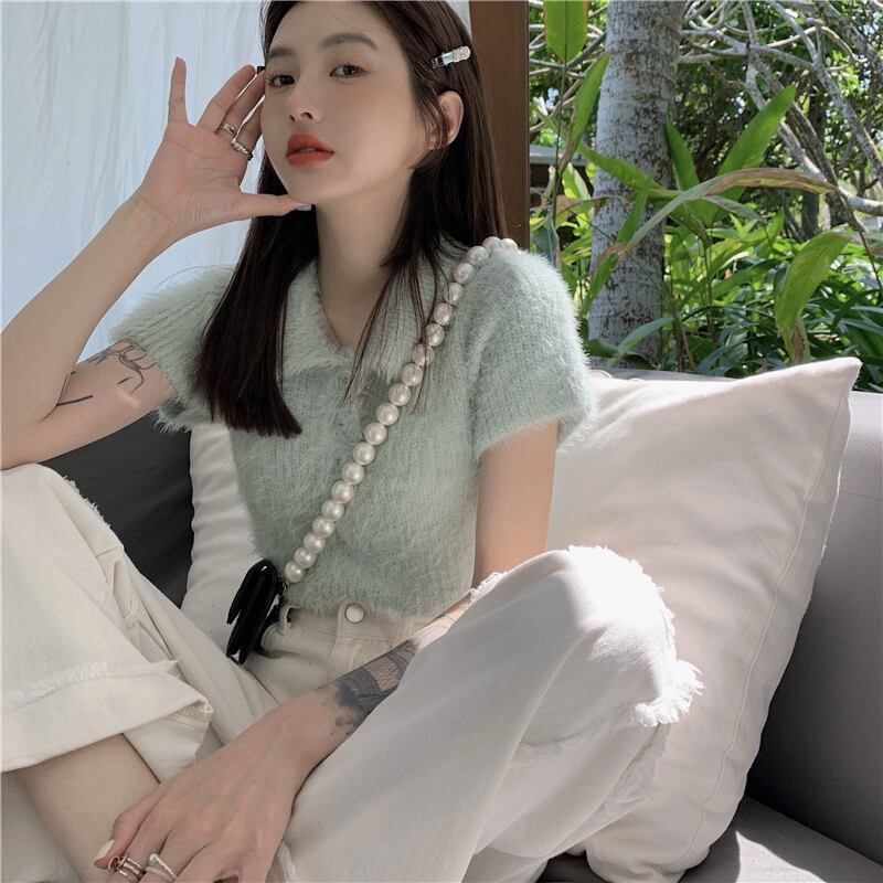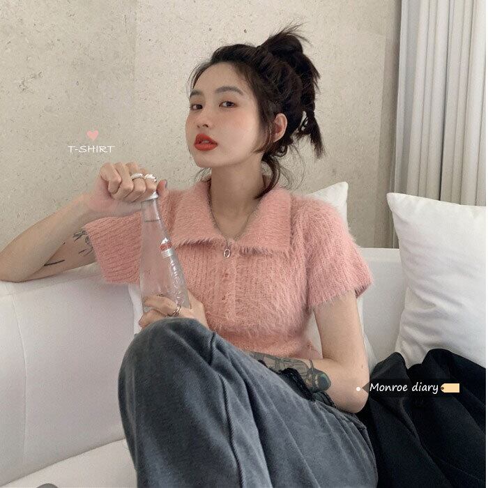 ニットトップス シャツ 韓国ファッションショートTシャツ夏服クロップドゆったりトレンド 夏物 MONROE24895179375
