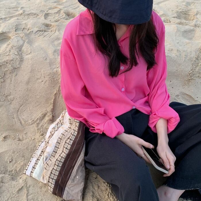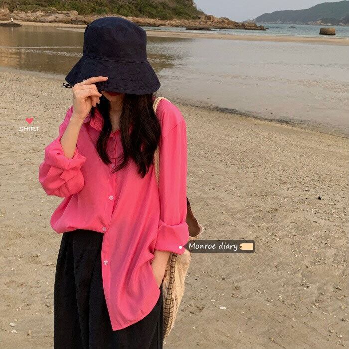ルーズシャツ スプリングブラウス ジャケット ロング ピンク 春物 長袖 MONROE99094703734