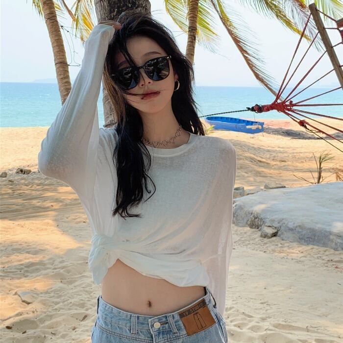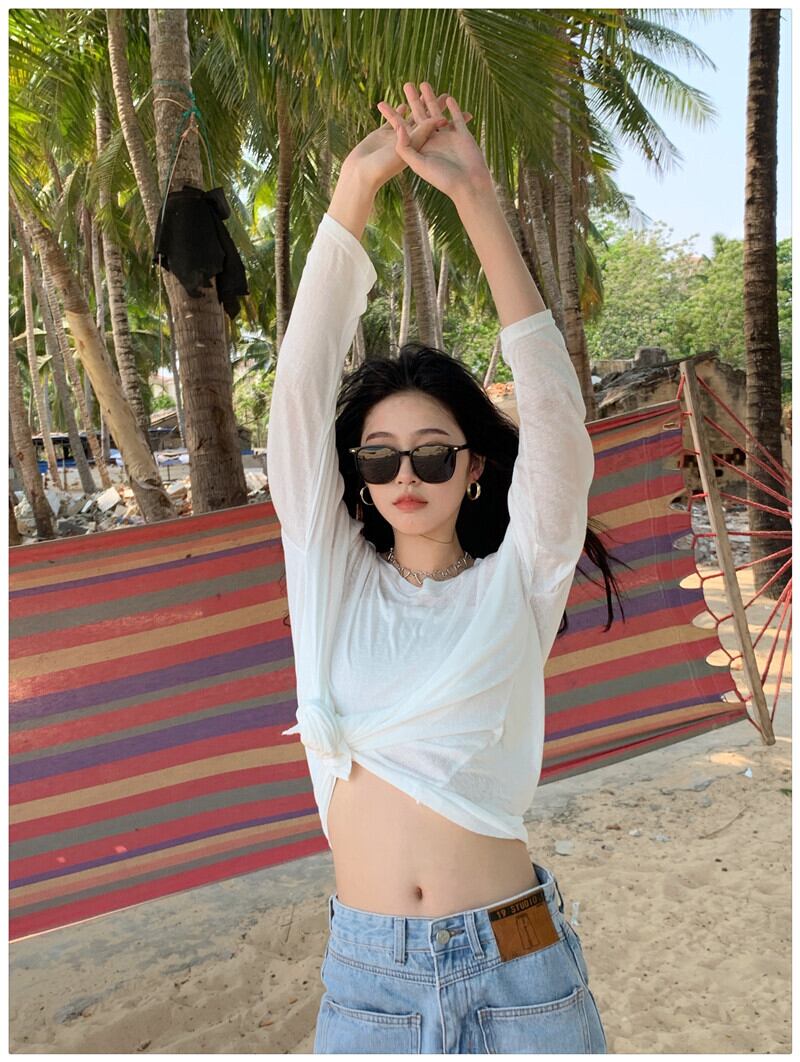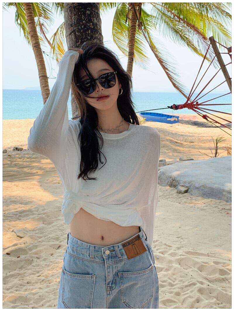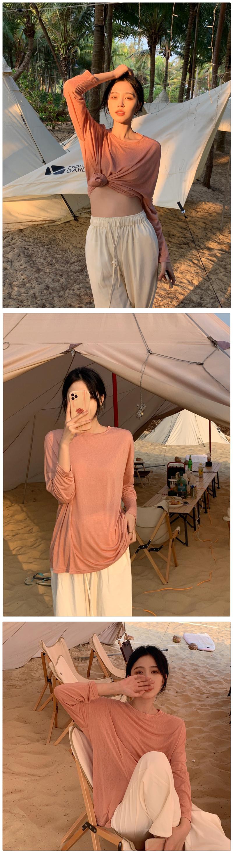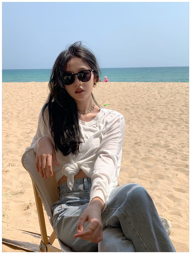 スタイル薄手ソリッド カラーTシャツシャツ レディースルーズゆったりスプリングトップス トレンド ロング 春物 ソリッドカラー 長袖 MONROE42952943357