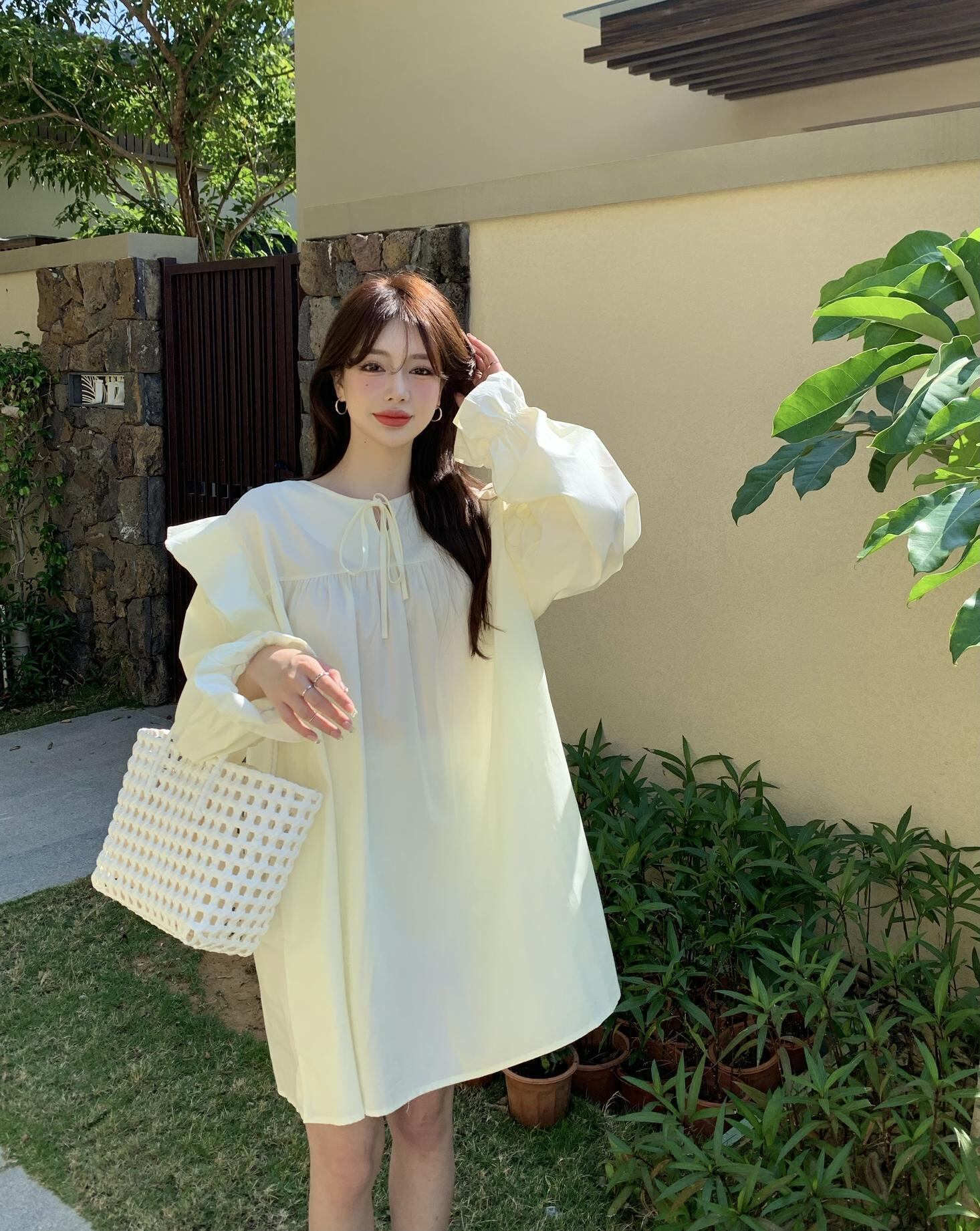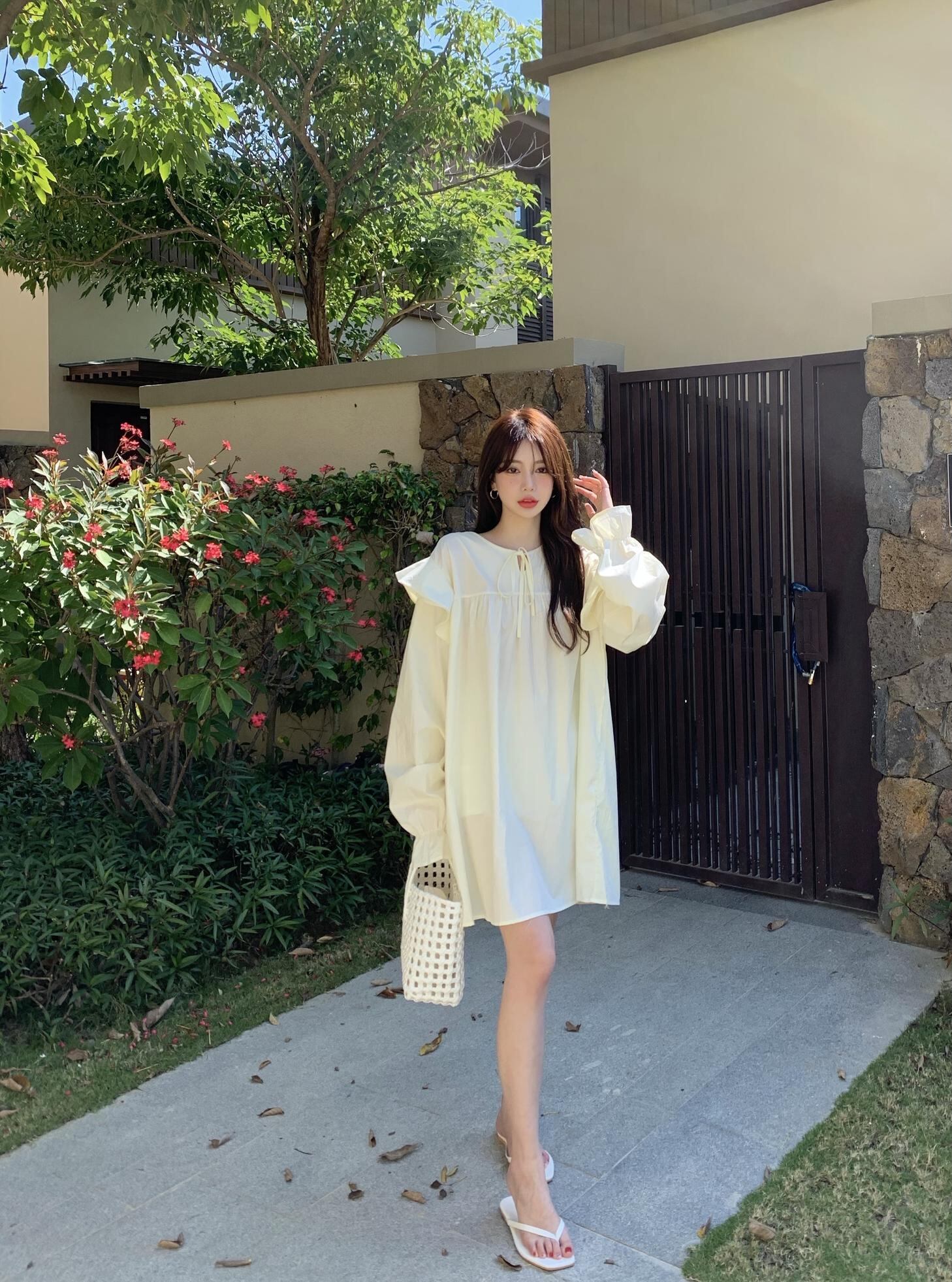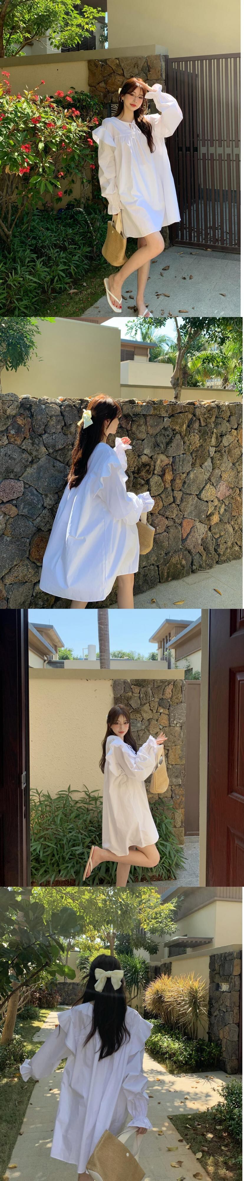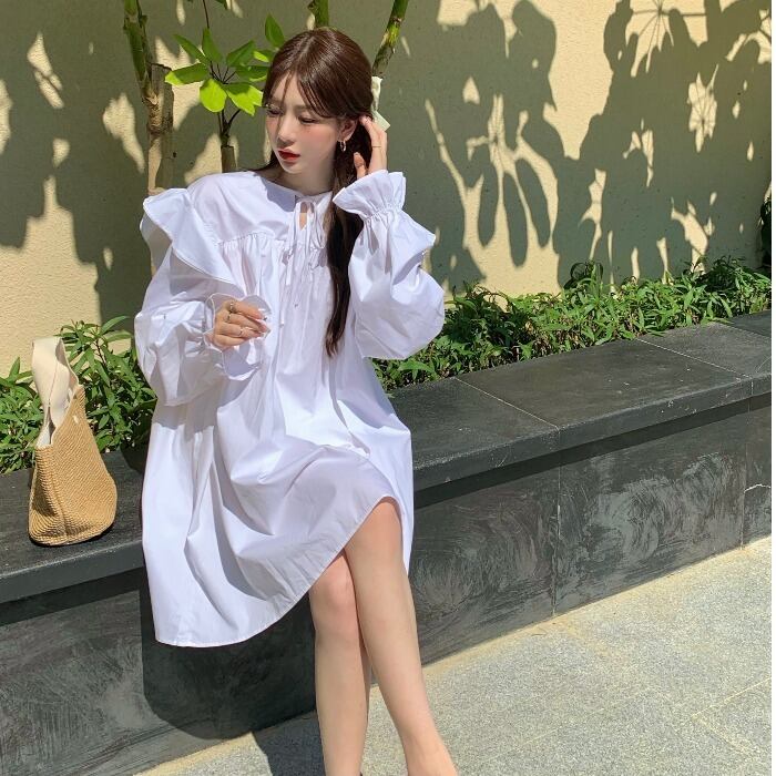 ホワイトワンピーススタンダードスプリングスカート Aライン レトロ 春物 MONROE87581847422